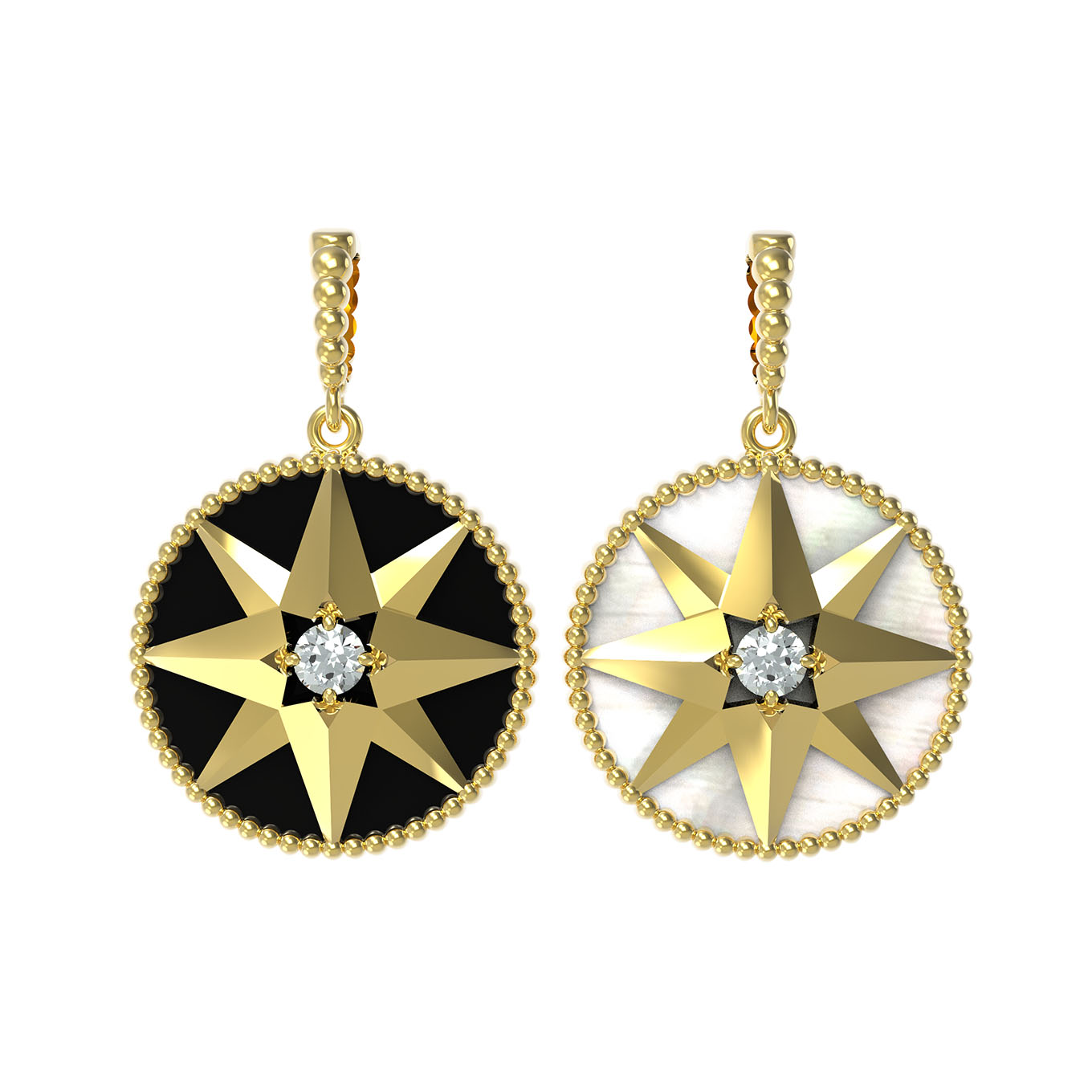 Подвеска из лимонного золота c фианитом, ониксом и перламутром