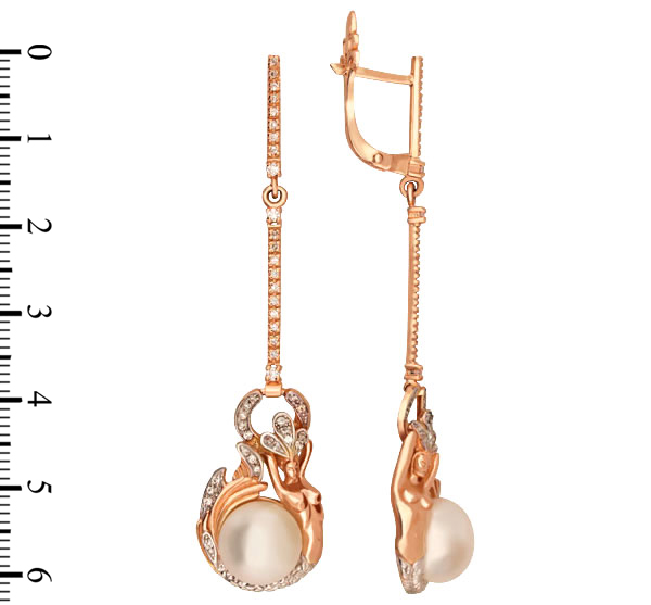 Серьги из золота c бриллиантами и жемчугом