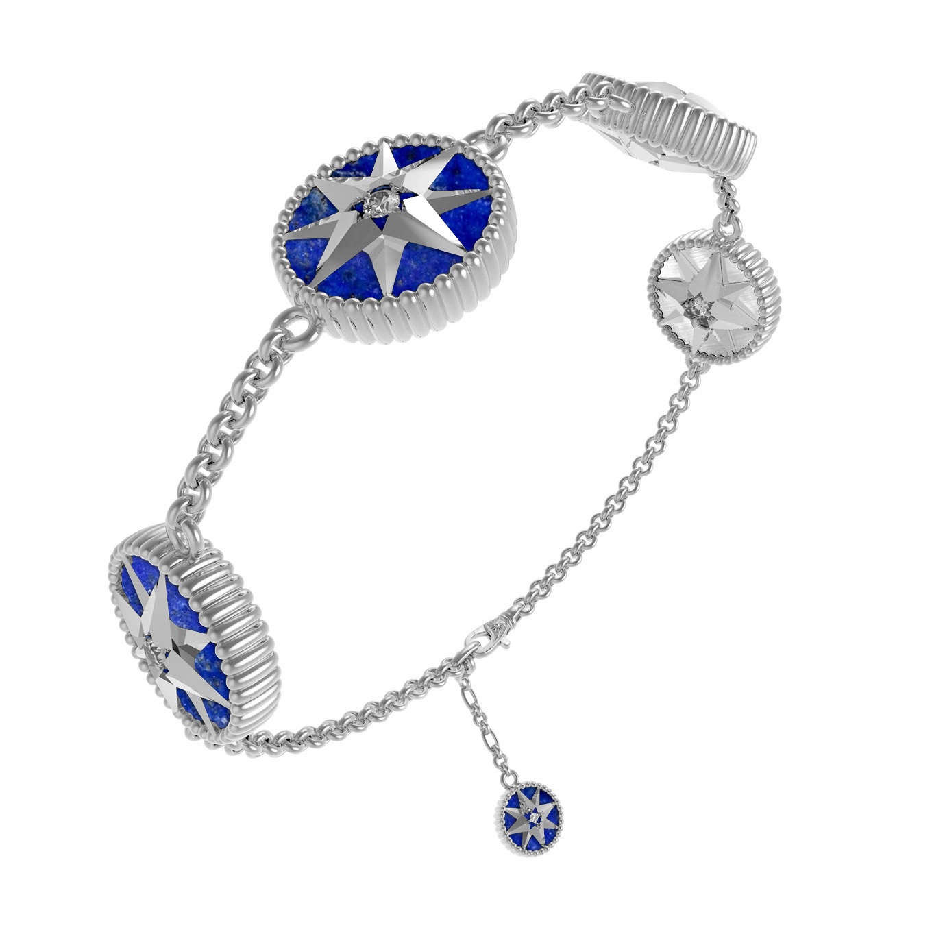 Браслет из белого золота c фианитом, лазуритом и перламутром