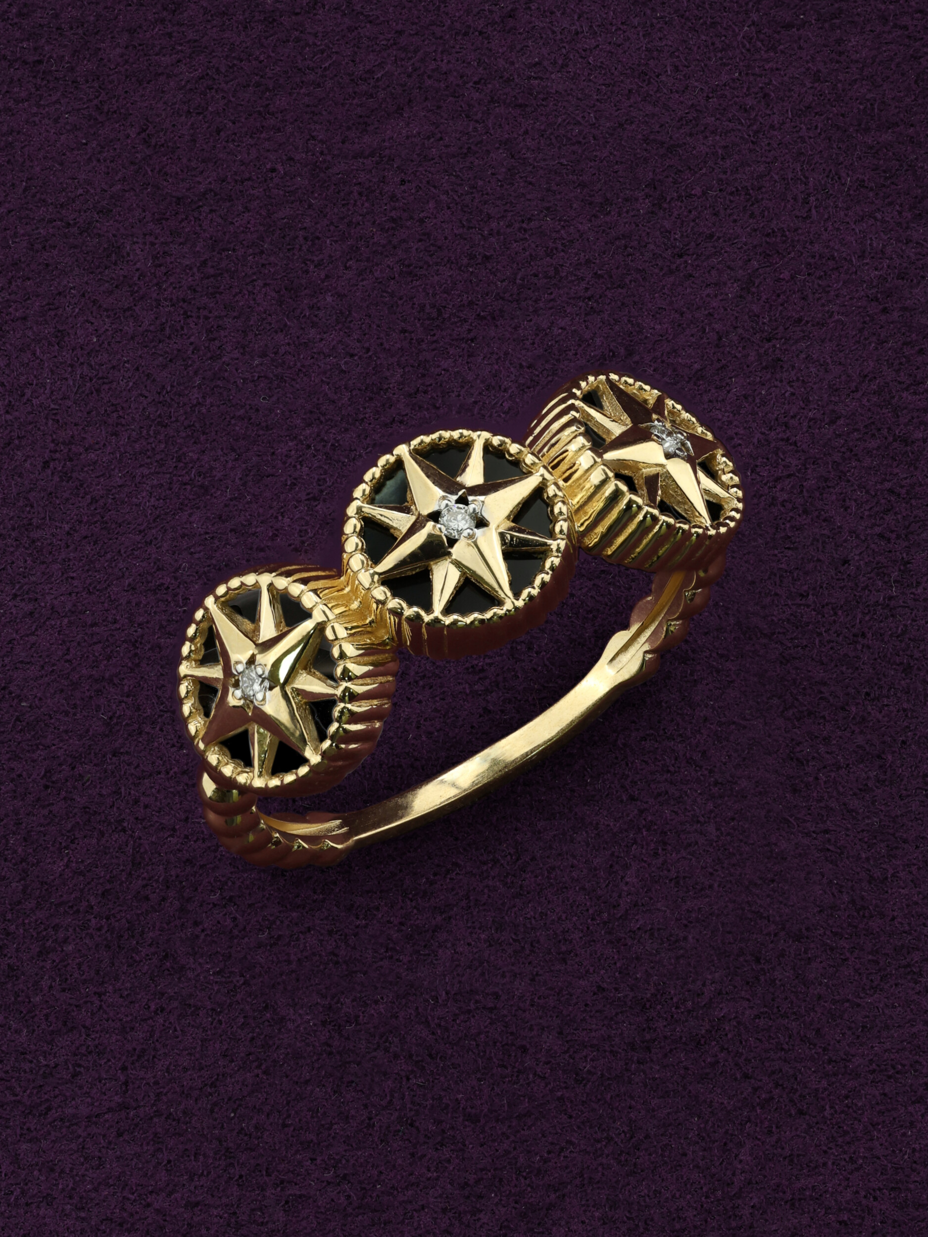 Кольцо из лимонного золота c бриллиантами и ониксом
