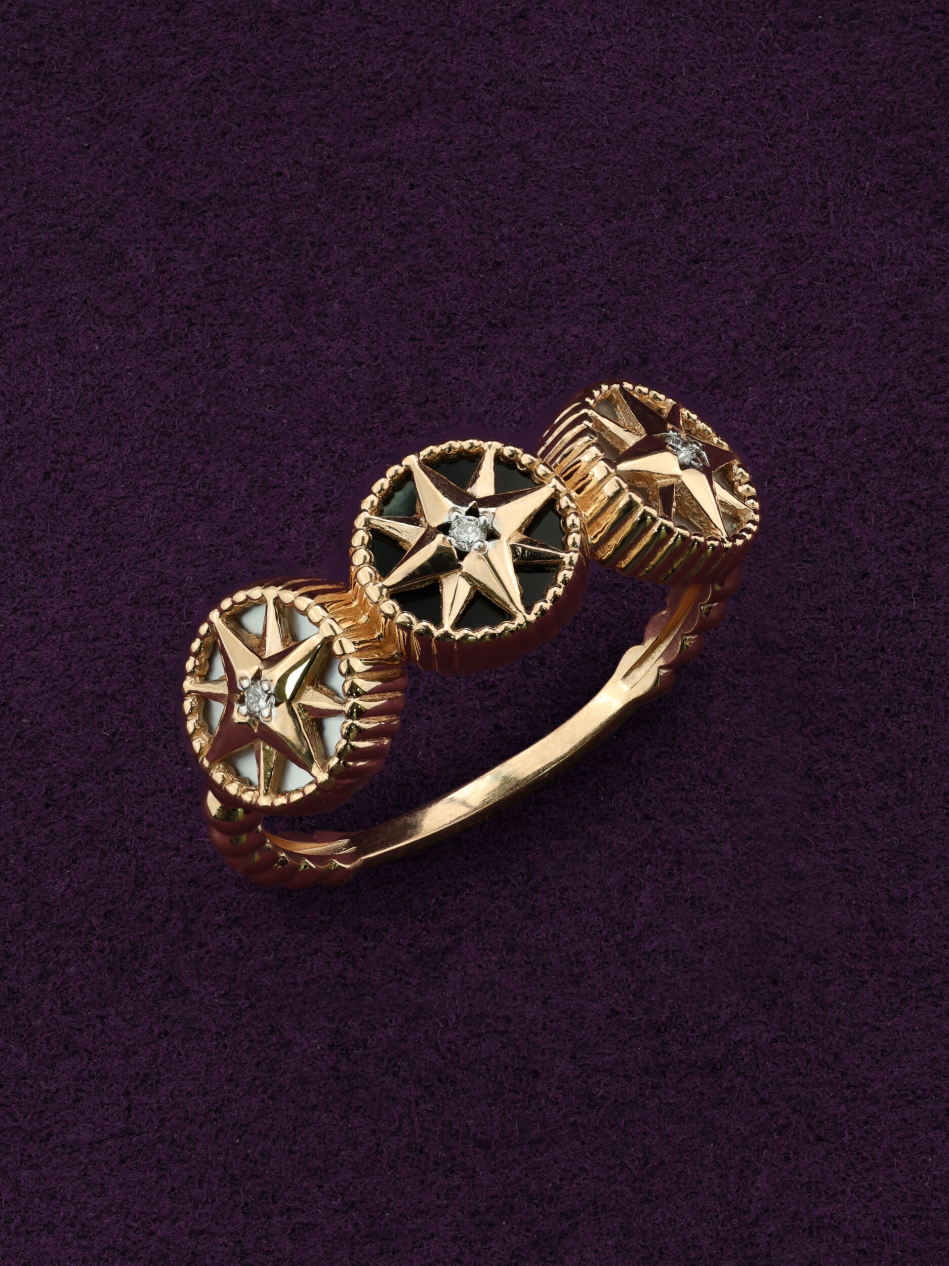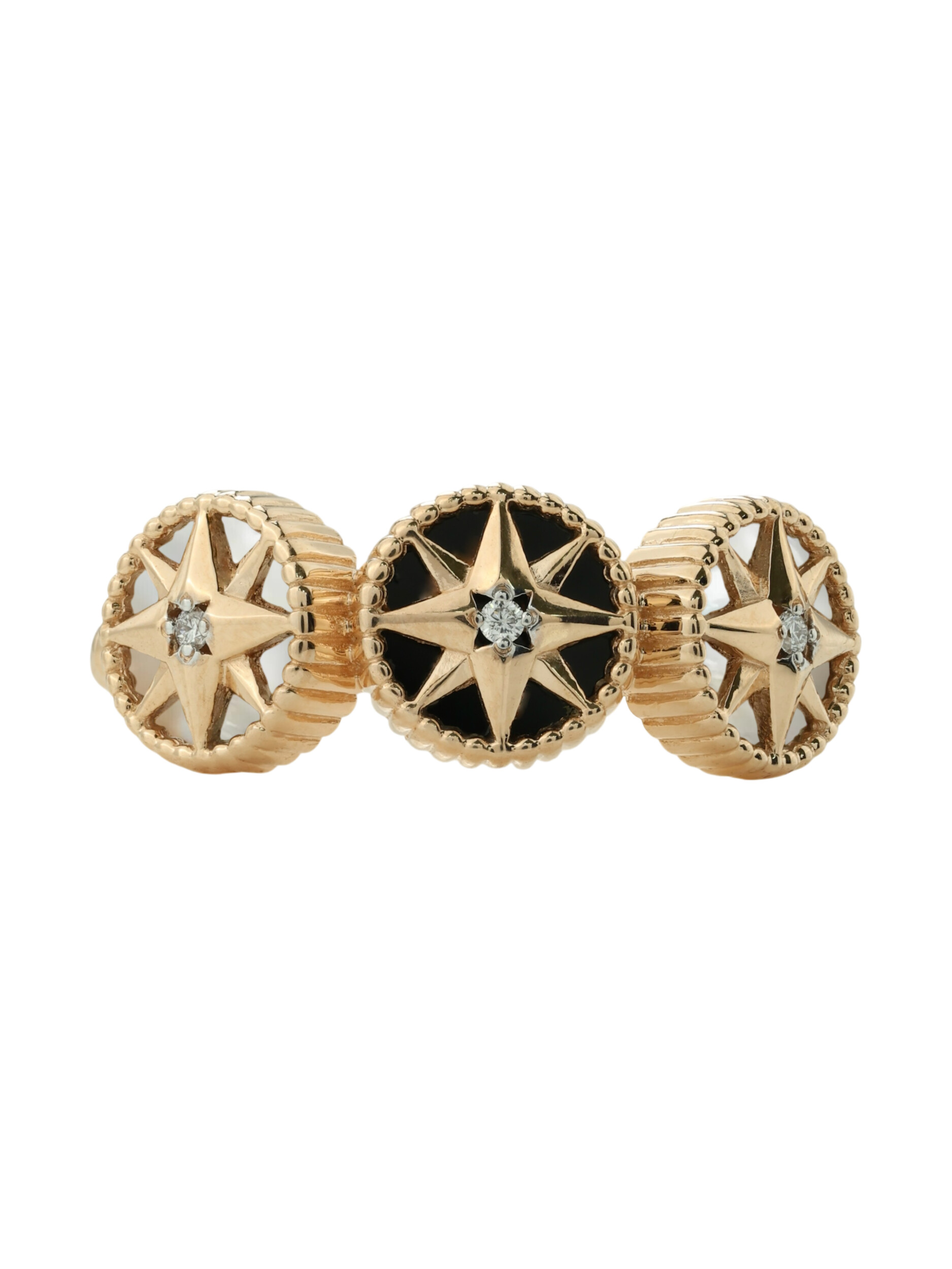 Кольцо из золота c бриллиантами, ониксом и перламутром