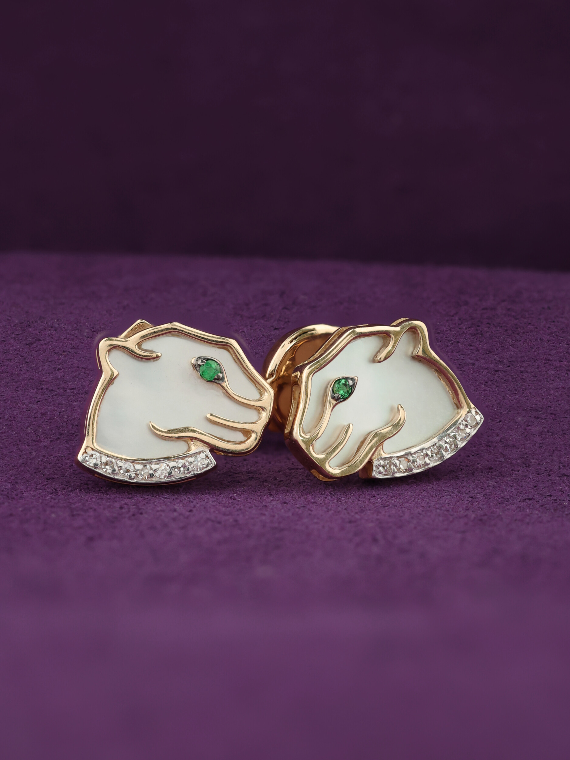 Серьги из золота c бриллиантами, изумрудом и перламутром