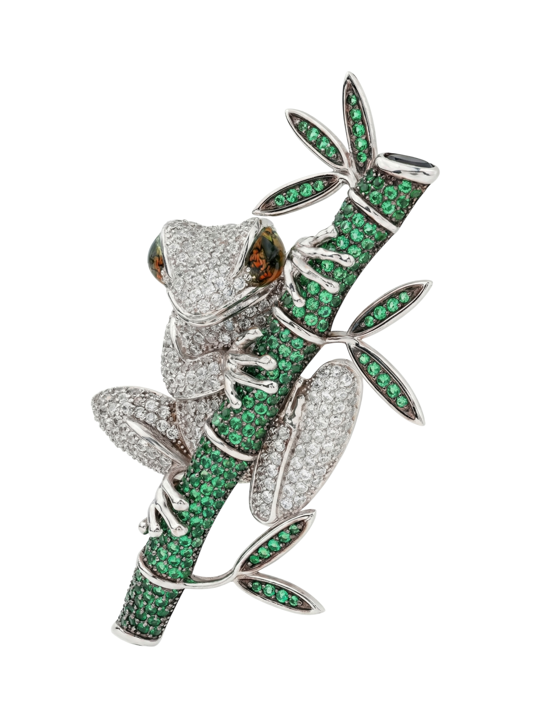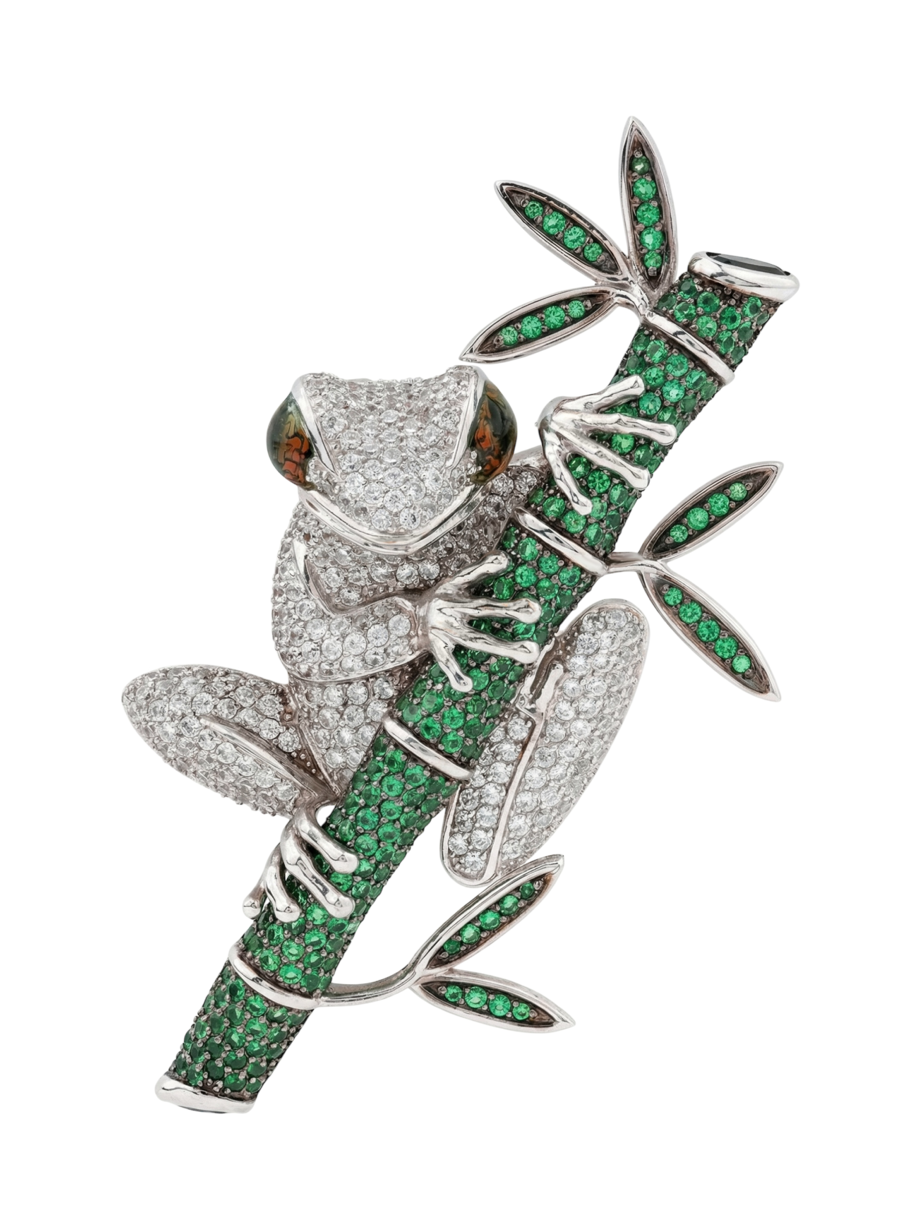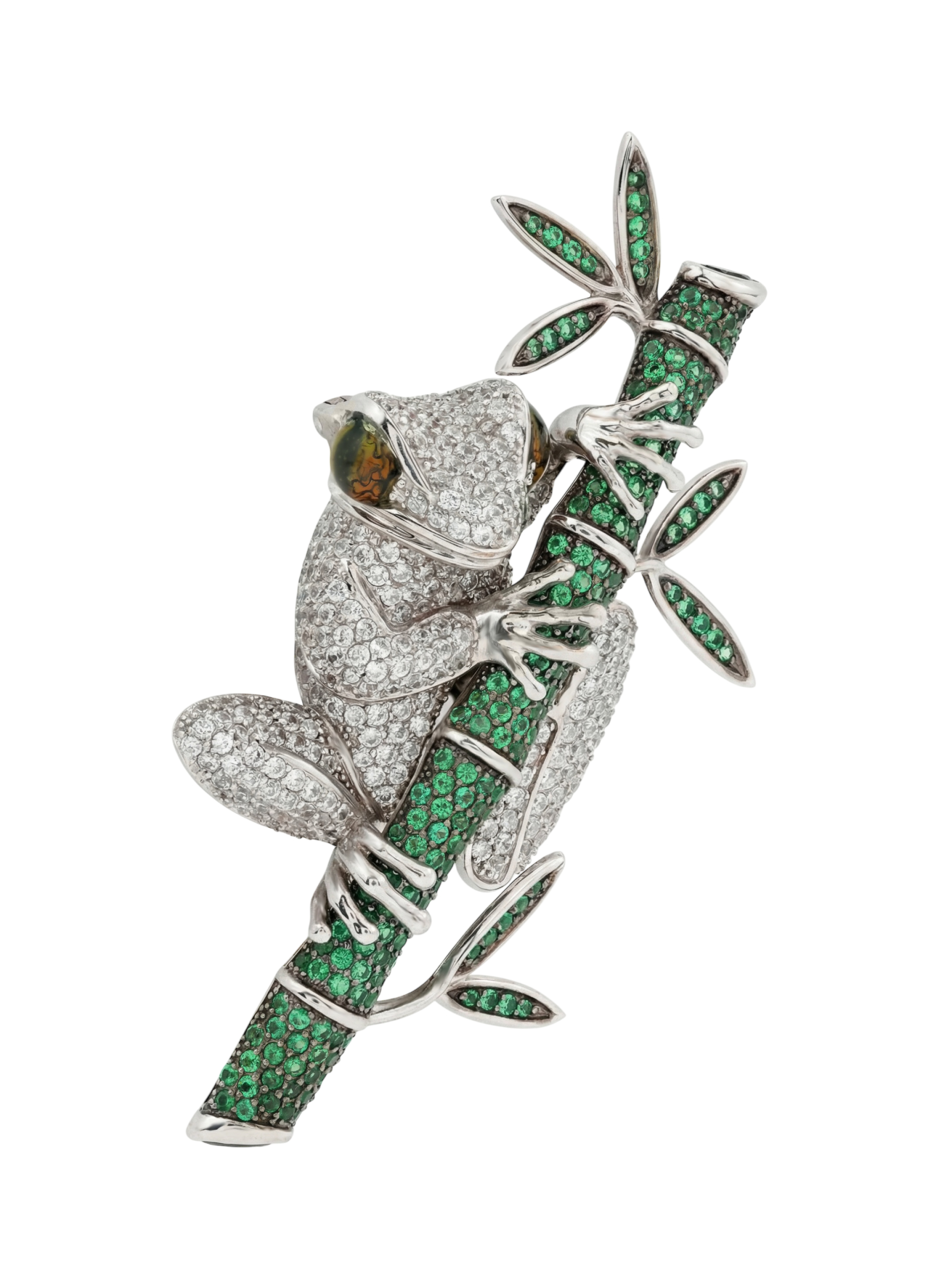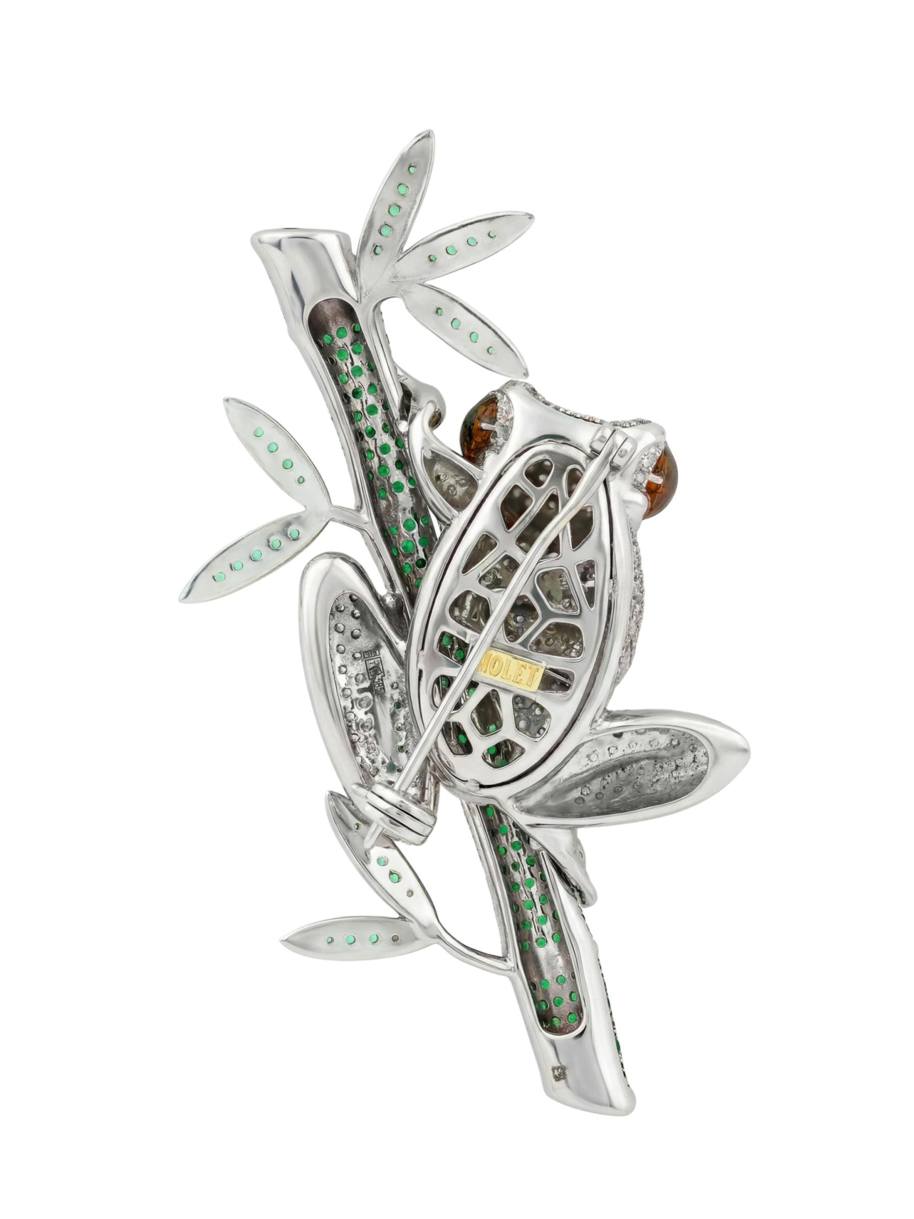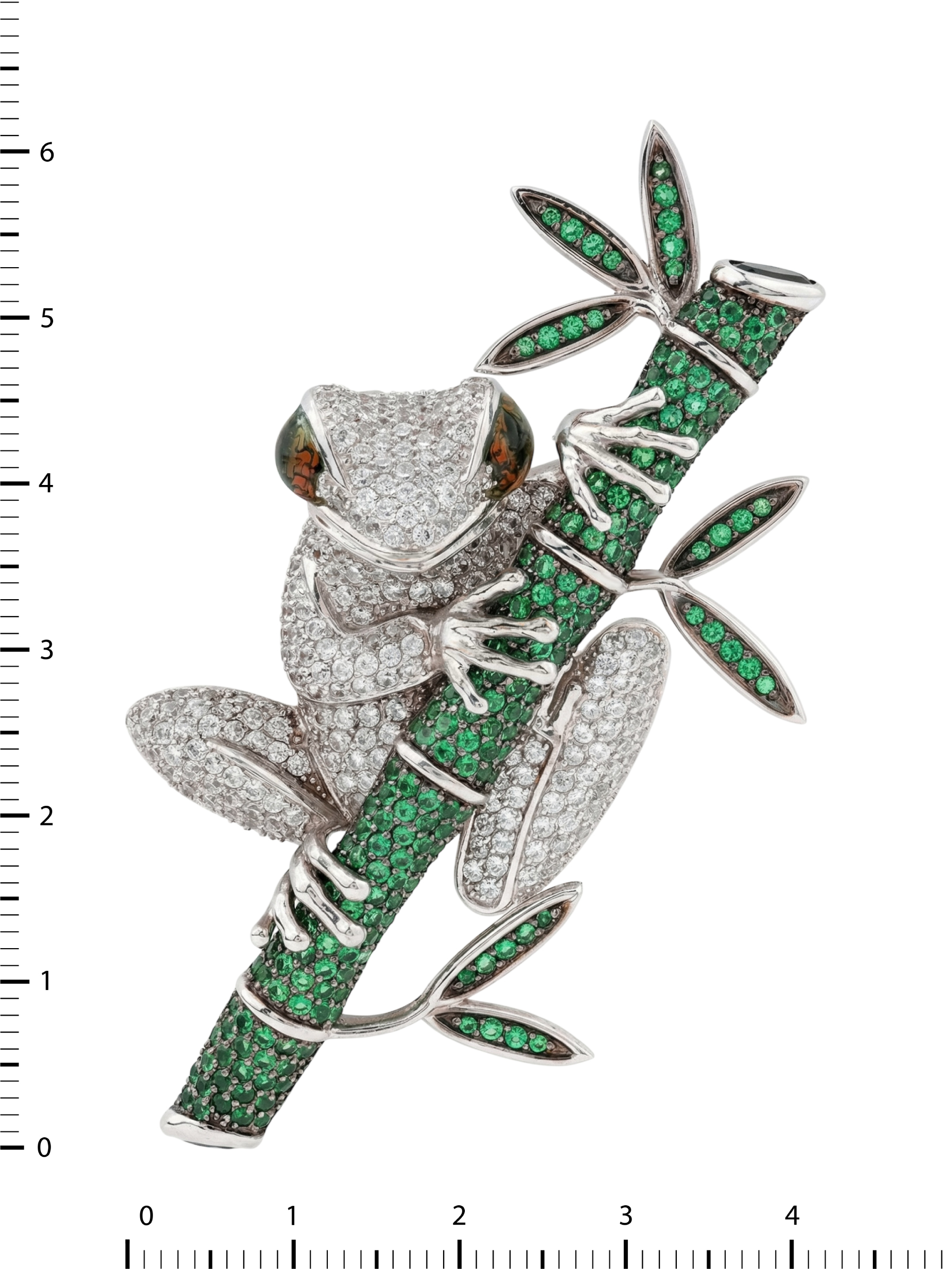 Брошь из белого золота c эмаль, фианитом и дымчатым кварцем