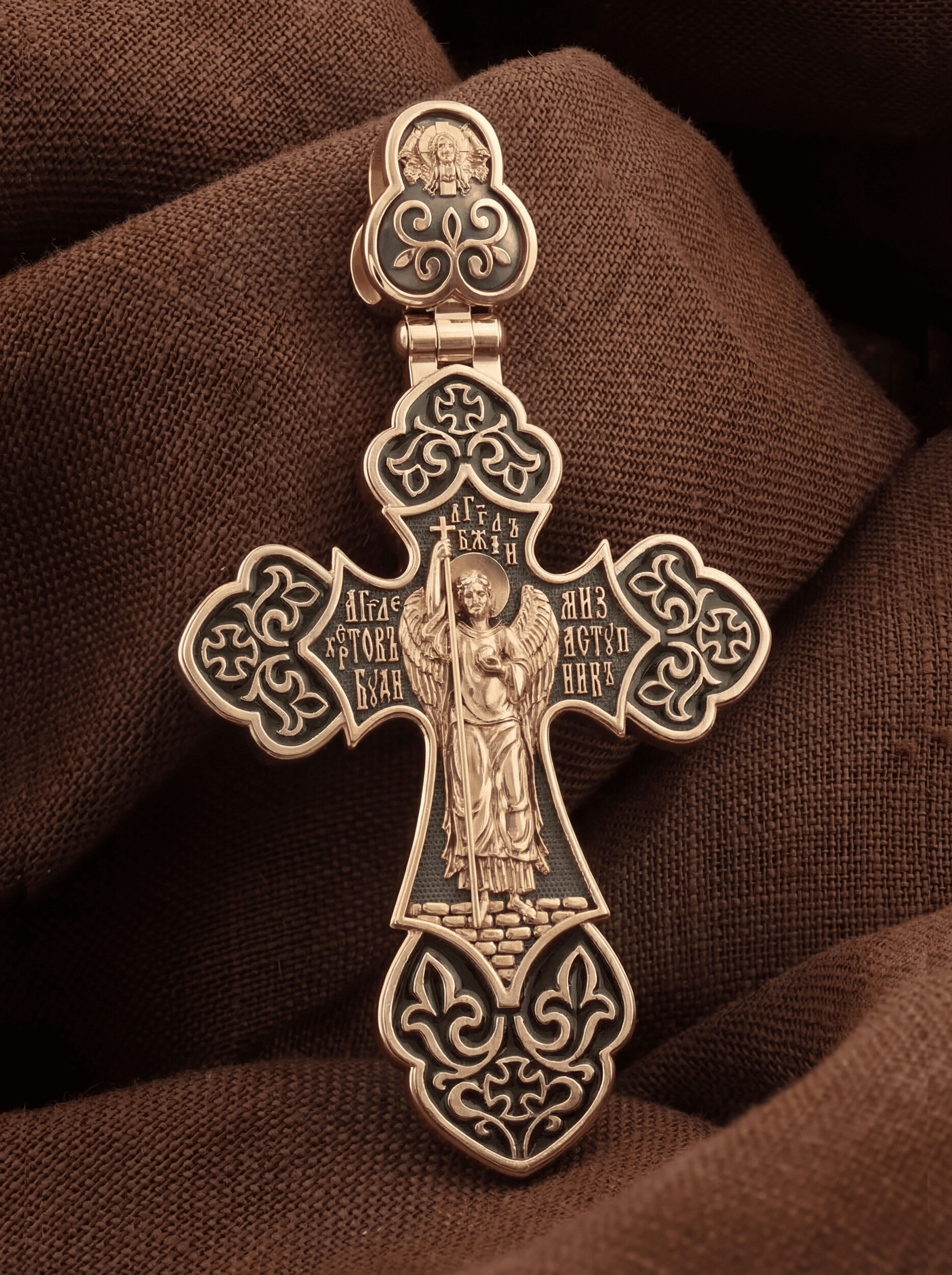 Основой композиции оборотной стороны является ростовое изображение Ангела Хранителя. Ангел, который дается каждому человеку в Крещении для попечения и защиты его души. Ангел Хранитель неотступно находится рядом с человеком, помогая, оберегая и наставляя его, а после смерти сопровождает его душу через мытарства. Рядом с изображением Ангела написана молитва: «Ангеле Христов, буди ми заступник».