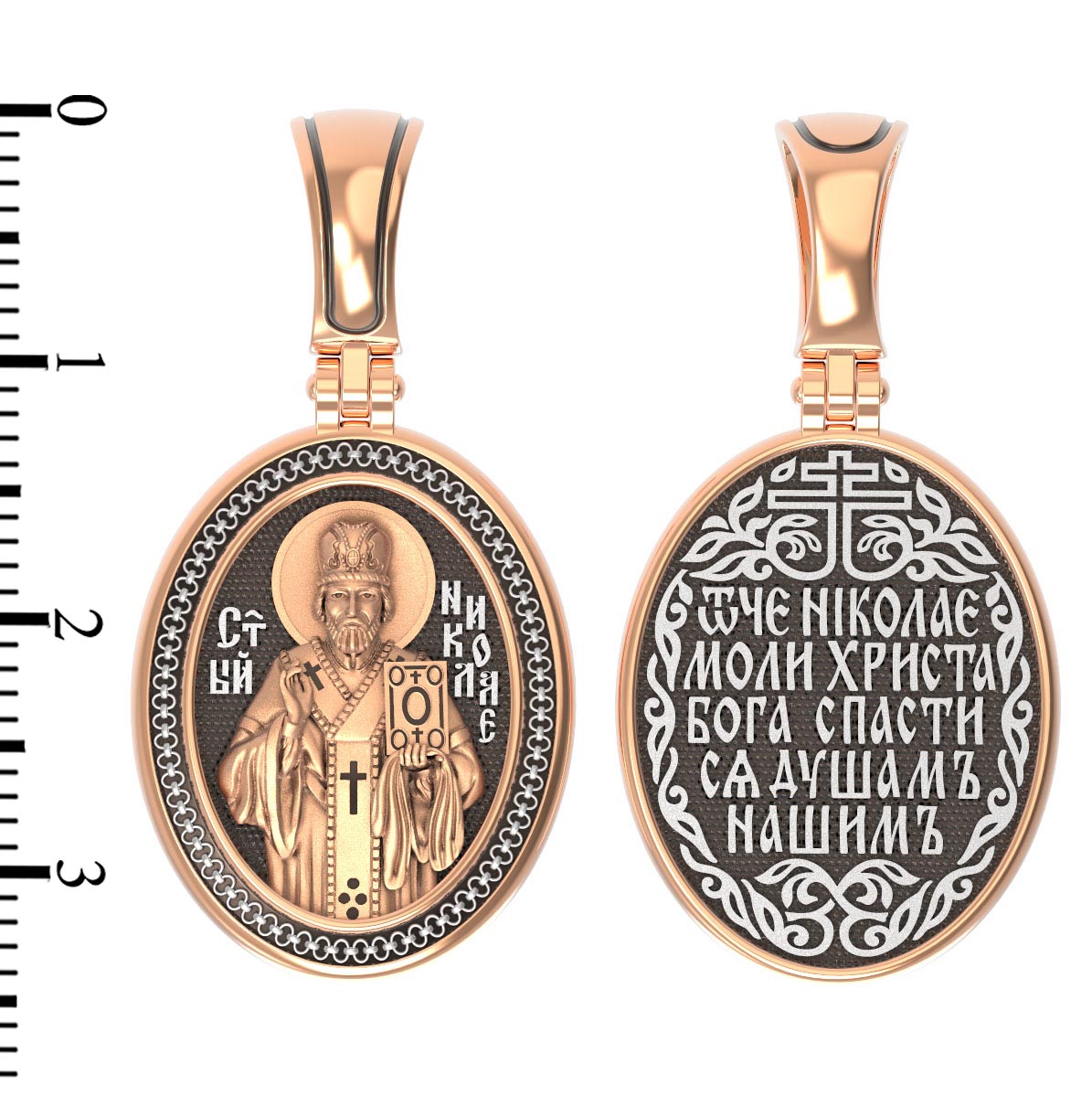 Лицевую сторону возглавляет икона святителя Николая Чудотворца. Святитель Николай родился во второй половине III века в Малой Азии в Ликийском городе Патары. С рождения Божий Угодник проявлял необыкновенные дарования. Сохранилось Предание, что во время крещения он, никем не поддерживаемый, простоял в купели три часа. С детства святитель избегал пустых развлечений, любил молитву, прекрасно учился и проводил свободное время за чтением Священного Писания. По достижении зрелого возраста жители Патар выбрали его своим пресвитером. Несколько лет спустя св. Николай стал епископом в городе Миры, столице Ликии.