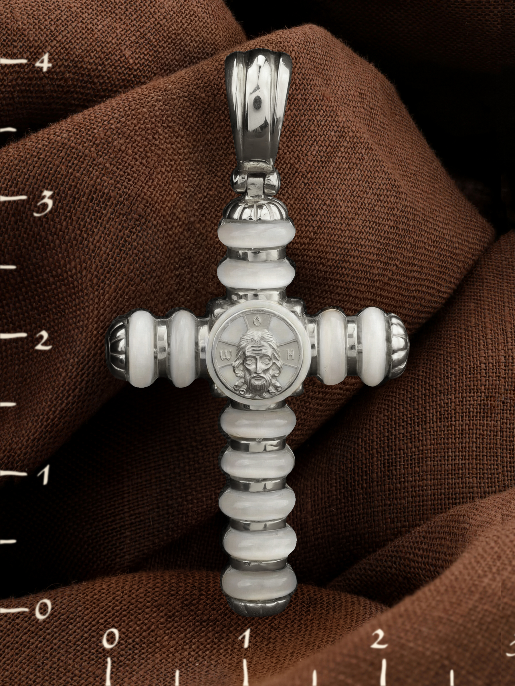 Крест из белого золота c кахолонгом
