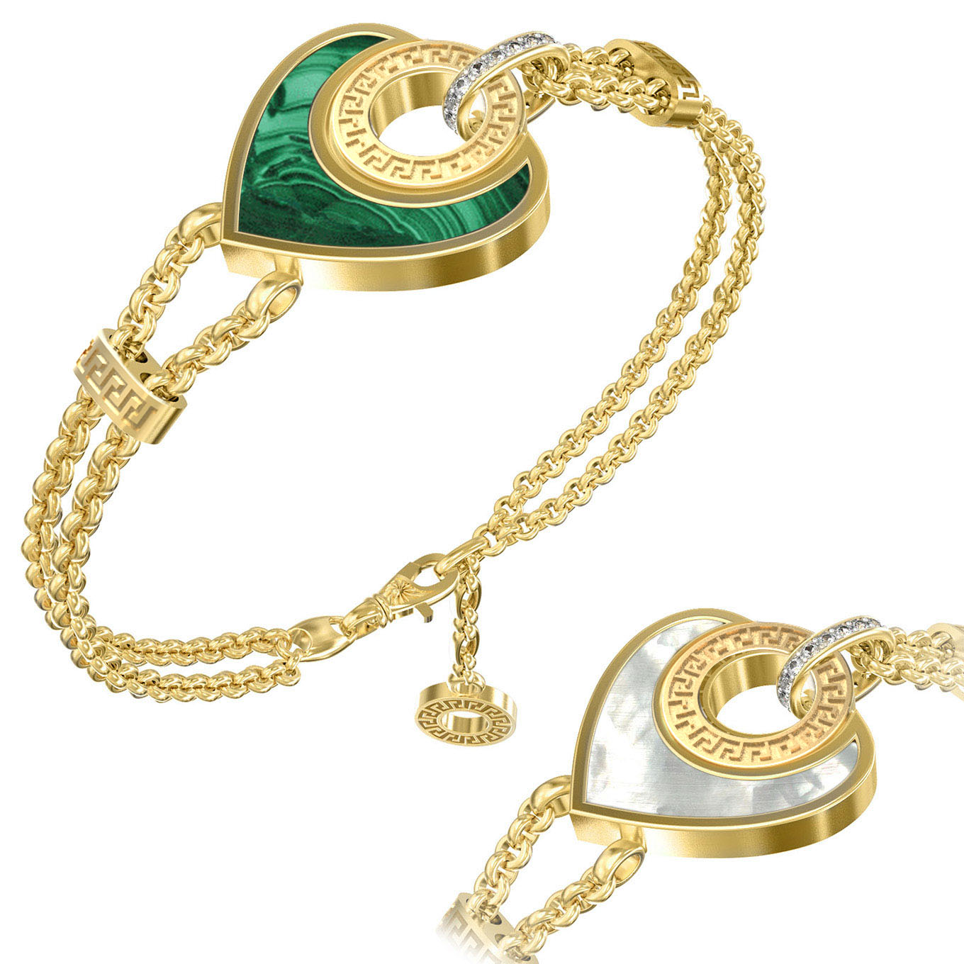Браслет из лимонного золота c фианитом, малахитом и перламутром