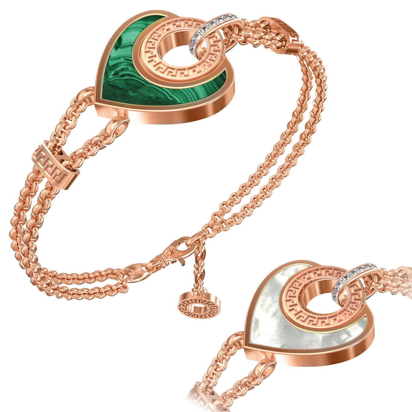 • Браслет из лимонного золота c фианитом, малахитом и перламутром