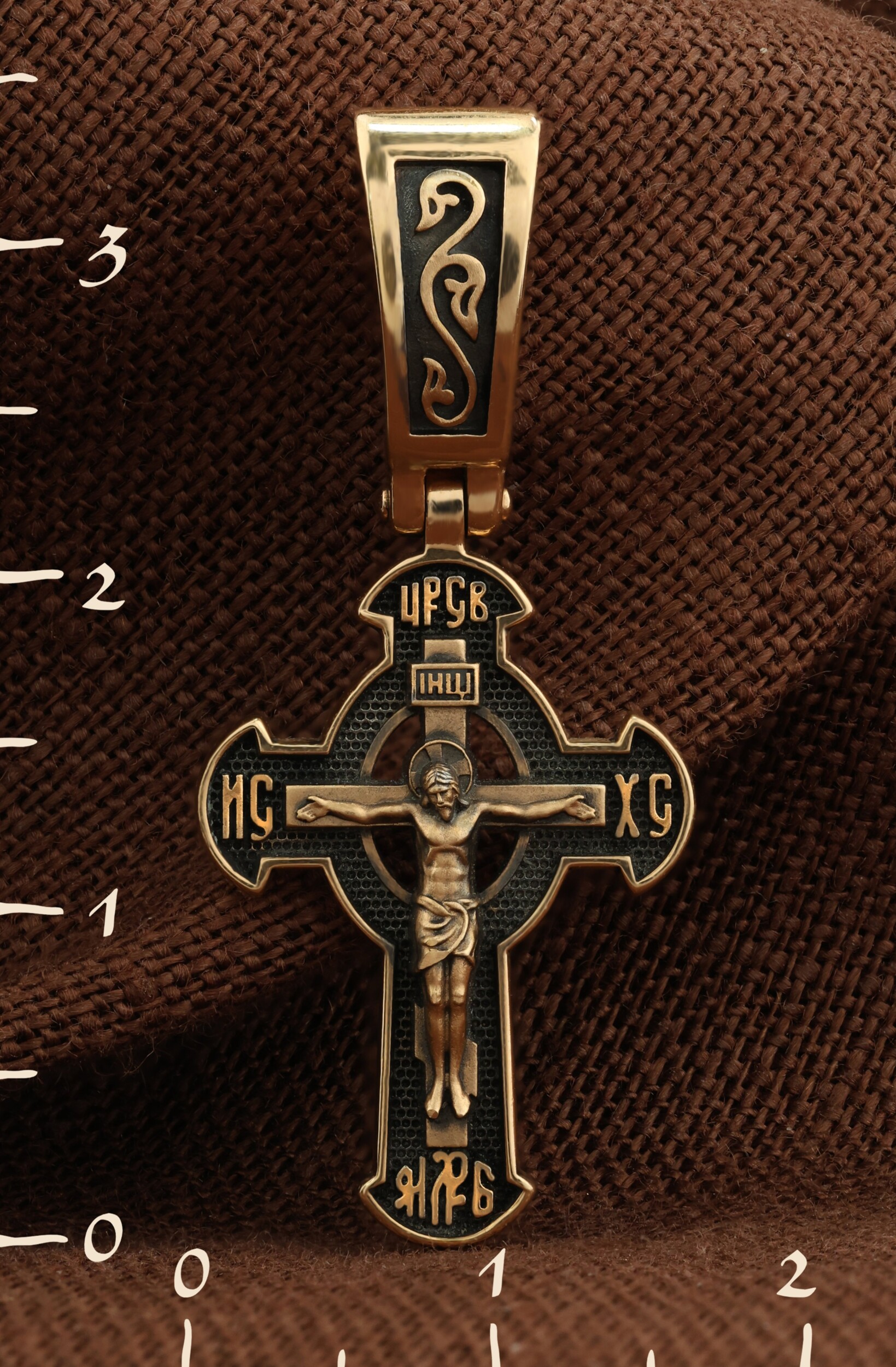 Оборотная сторона креста украшена растительным орнаментом. Помещенный на крест орнамент символизирует жизнедательную силу, животворное тепло креста. В растительный узор, на горизонтальной перекладине, вписано молитвенное славословие: «Спаси и сохрани». Эта надпись означает непрерывную молитву, совершаемую носителем данного креста.