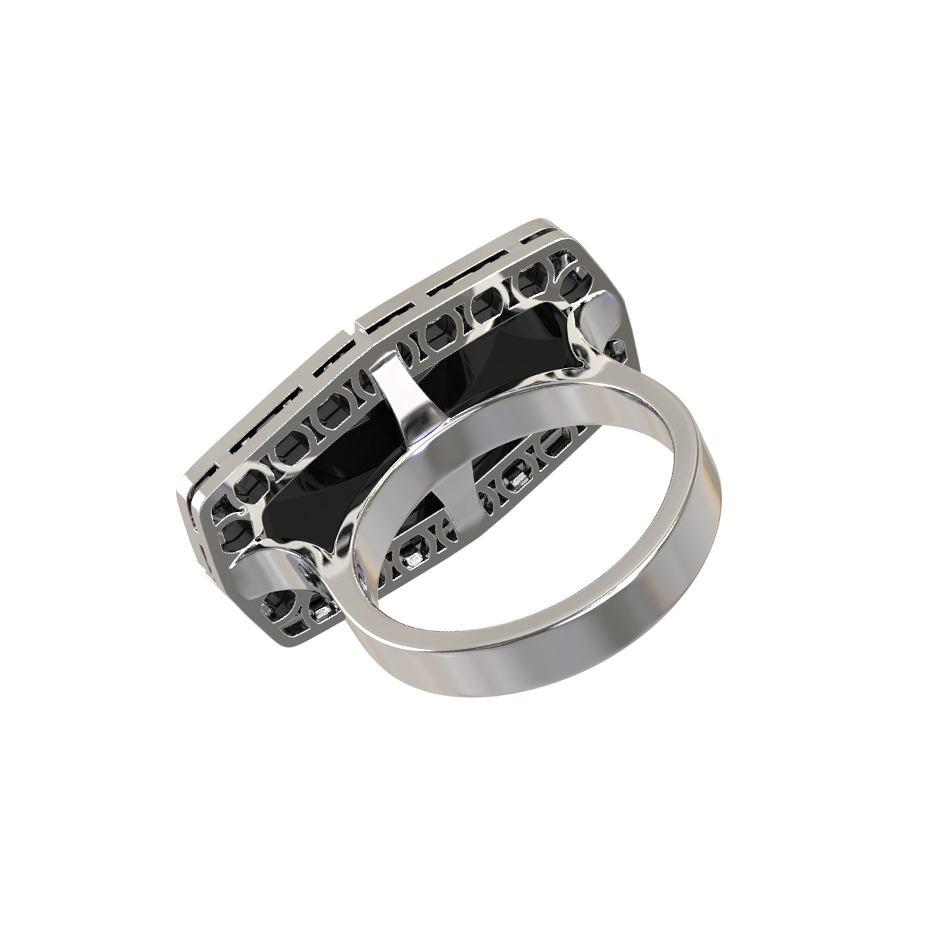 Кольцо из белого золота c бриллиантами, рубином и ониксом
