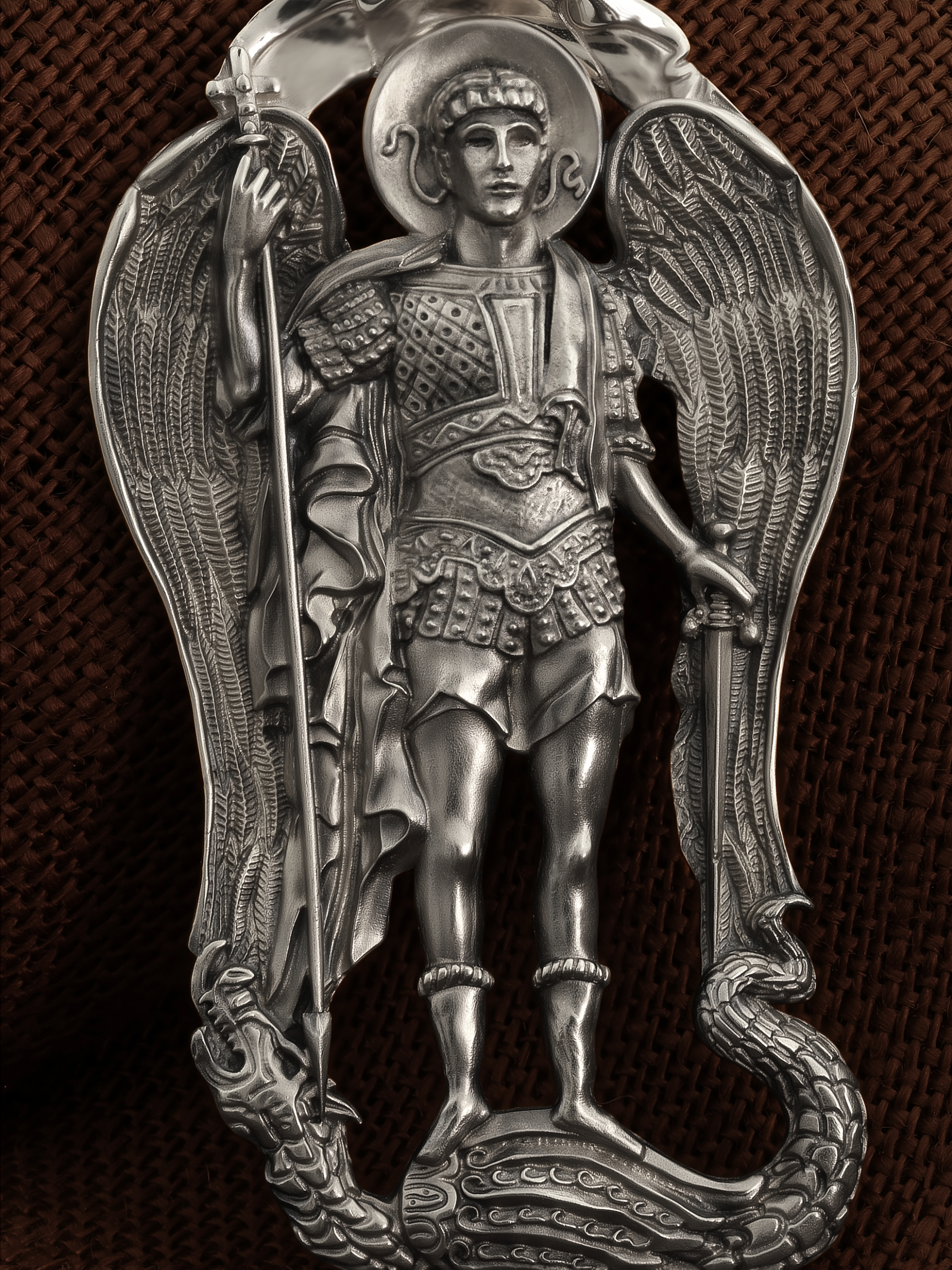 На обороте образка написана молитва Архангелу Михаилу: «Святой Архангел Божий Михаил! Ты наш защитник и хранитель от лукавого.»