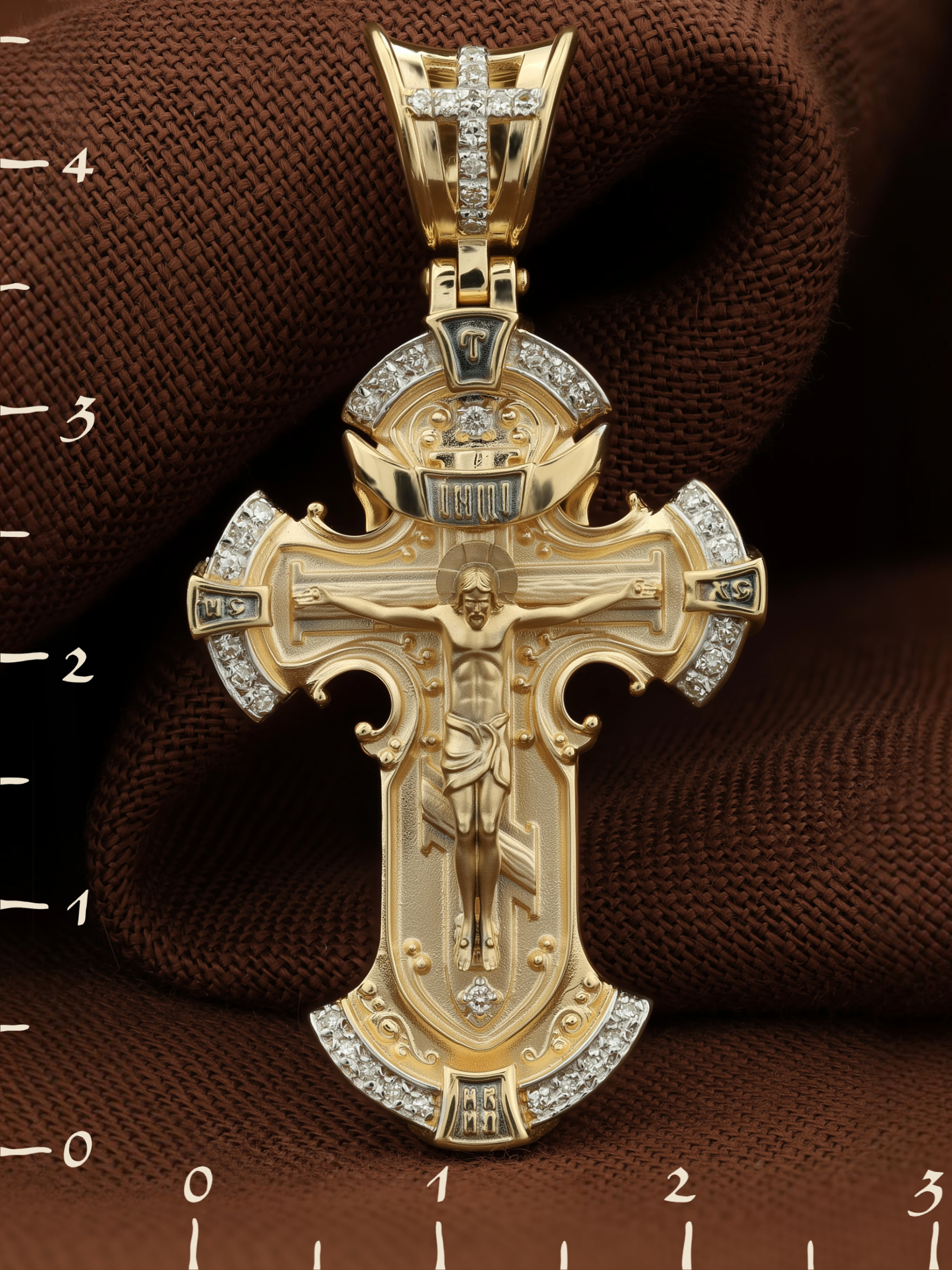 На лицевой стороне креста изображено Распятие Господа и Спасителя нашего Иисуса Христа, отдавшего Себя на смерть, для искупления грехов мира. Крест является символом жертвенной любви Всеблагого Бога к падшим людям, всепобеждающим духовным оружием христиан, основанием и средоточием церковной жизни. Господь сказал: кто хочет идти за Мною, отвергнись себя, и возьми крест свой, и следуй за Мною. (Мк. 8: 34). Верхняя перекладина символизирует титло — табличка, на которой, согласно Евангелию, было начертано: Иисус Назорей Царь Иудейский (IНЦI). Справа и слева от Распятия изображены символы «IС ХС» — святое имя Христа. Внизу креста написано слово «НИКА», что значит «победитель». В верхней части креста обозначена буква «Т», которая символизирует одно из орудий страданий Господа — трость.