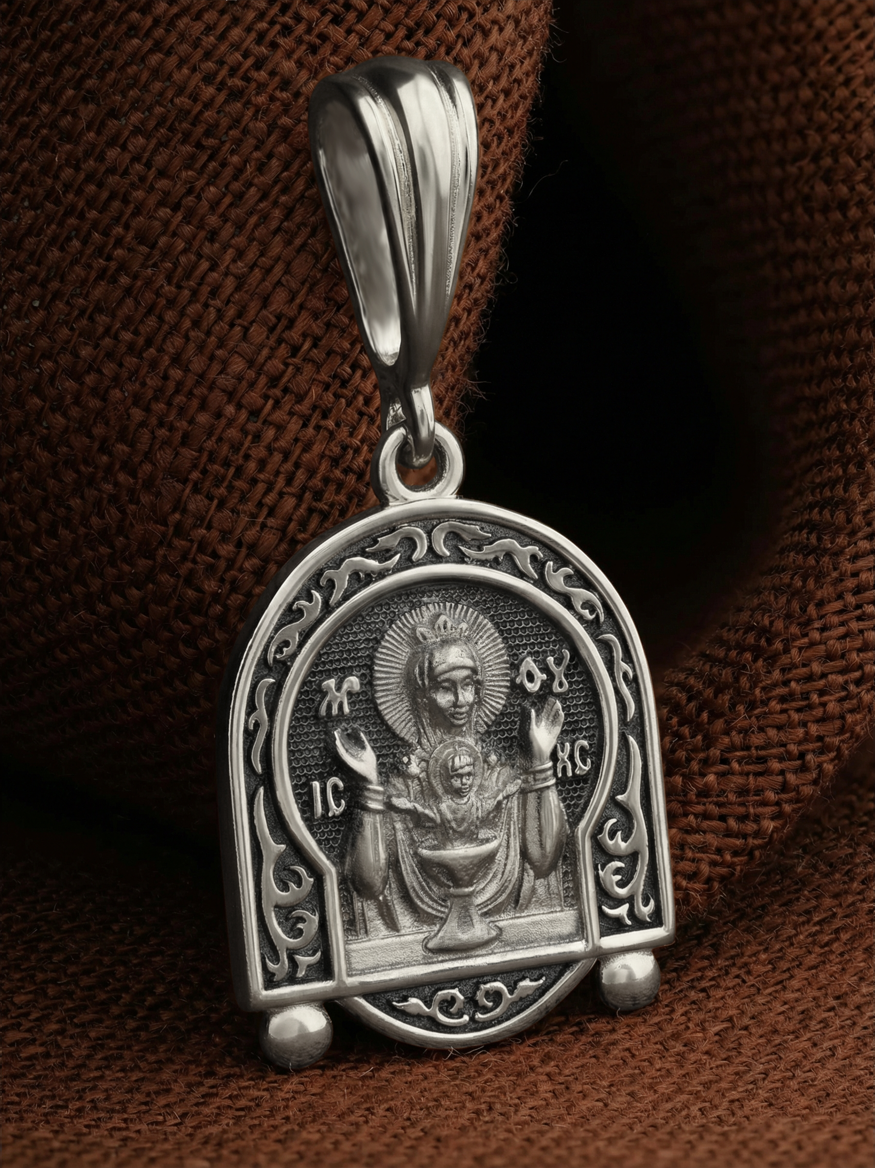 На лицевой части образка изображена икона Божией Матери «Неупиваемая чаша». Икона славится помощью в исцелении зависимостей, помогает людям обрести свободу от греховных страстей.