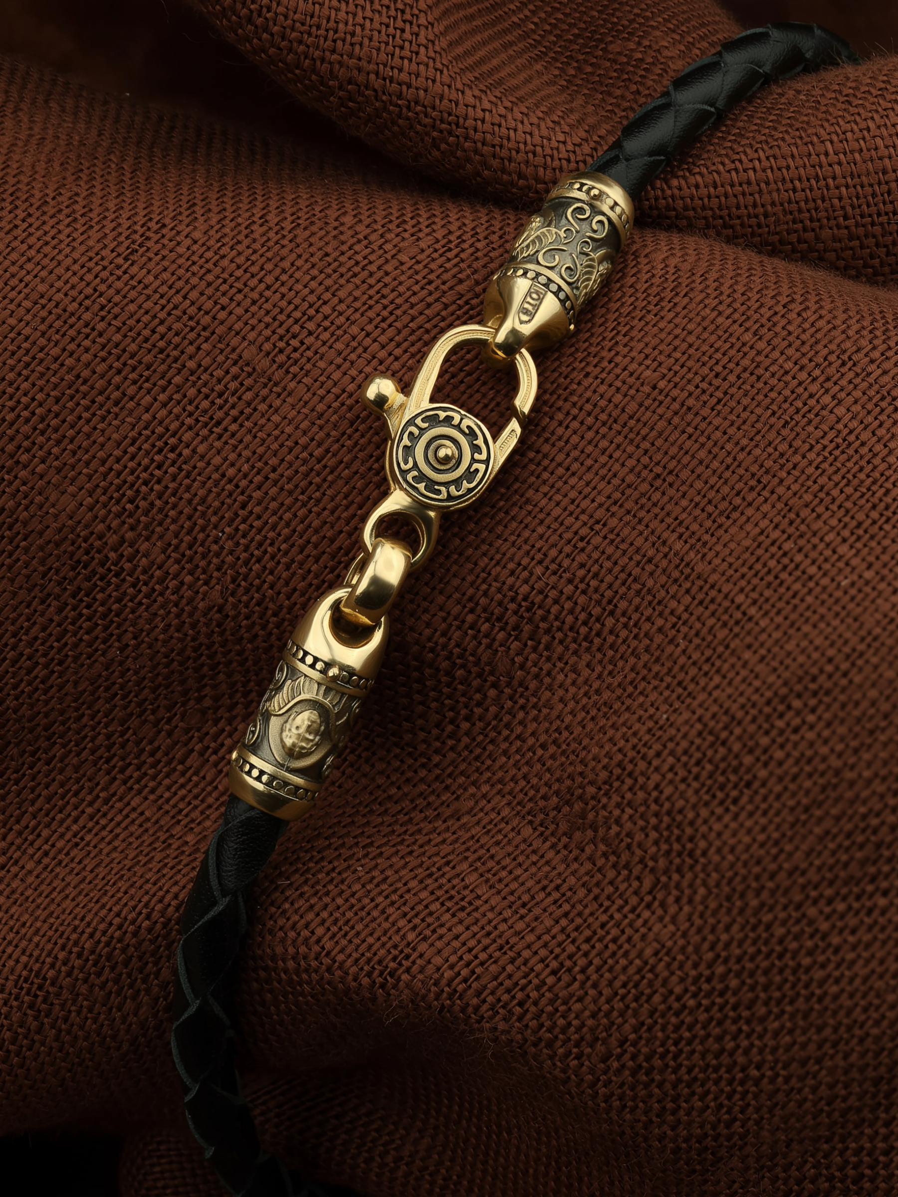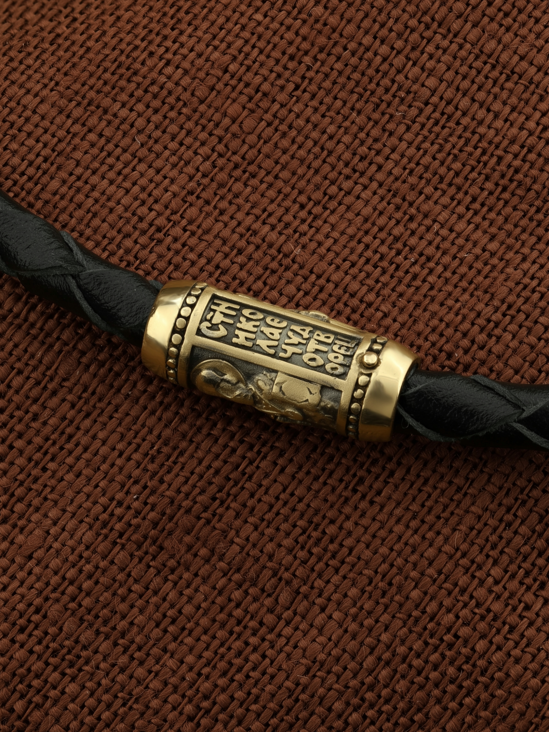 Браслет из лимонного золота c кожаным шнурком