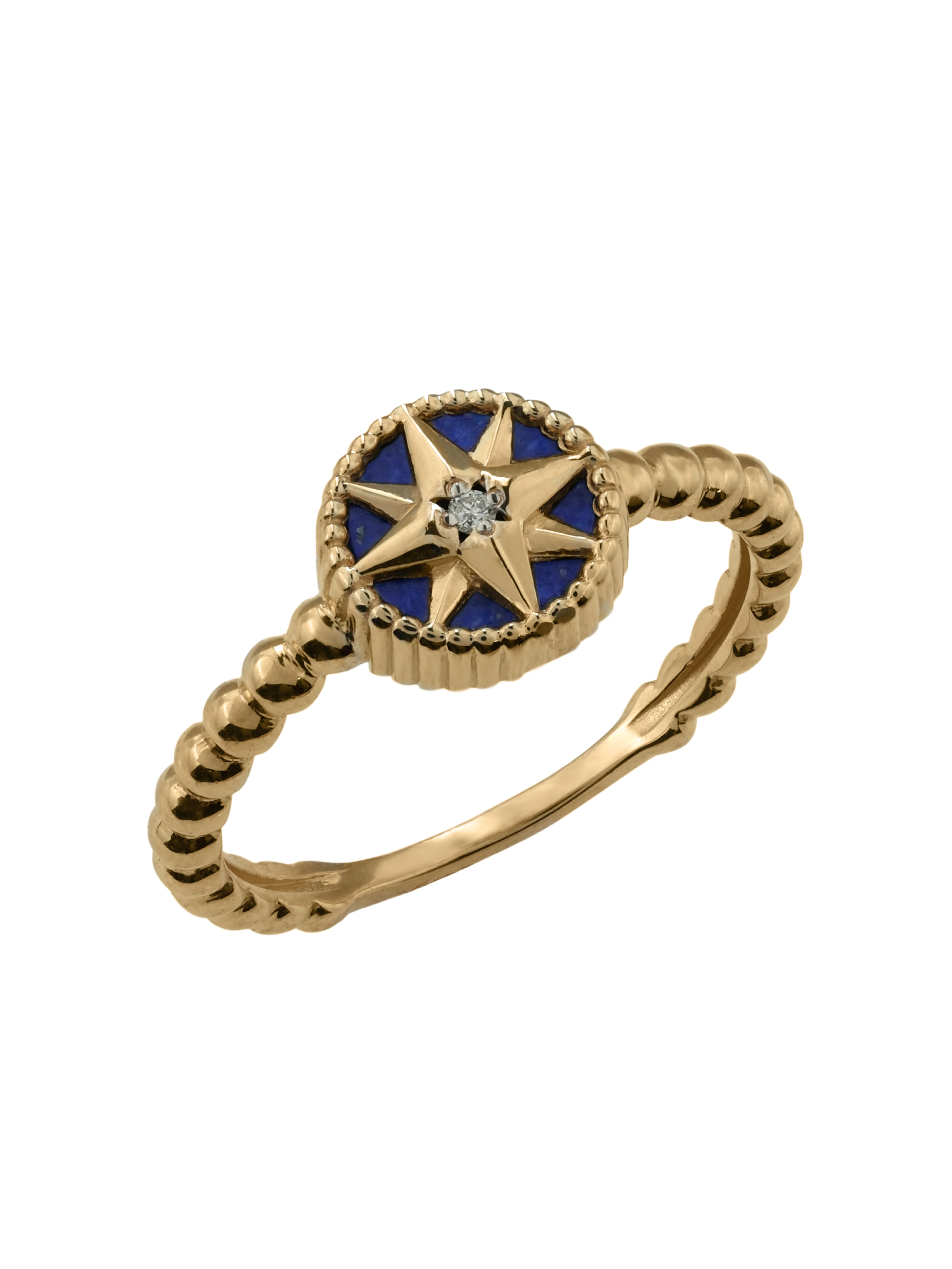 Кольцо из лимонного золота c бриллиантами и лазуритом