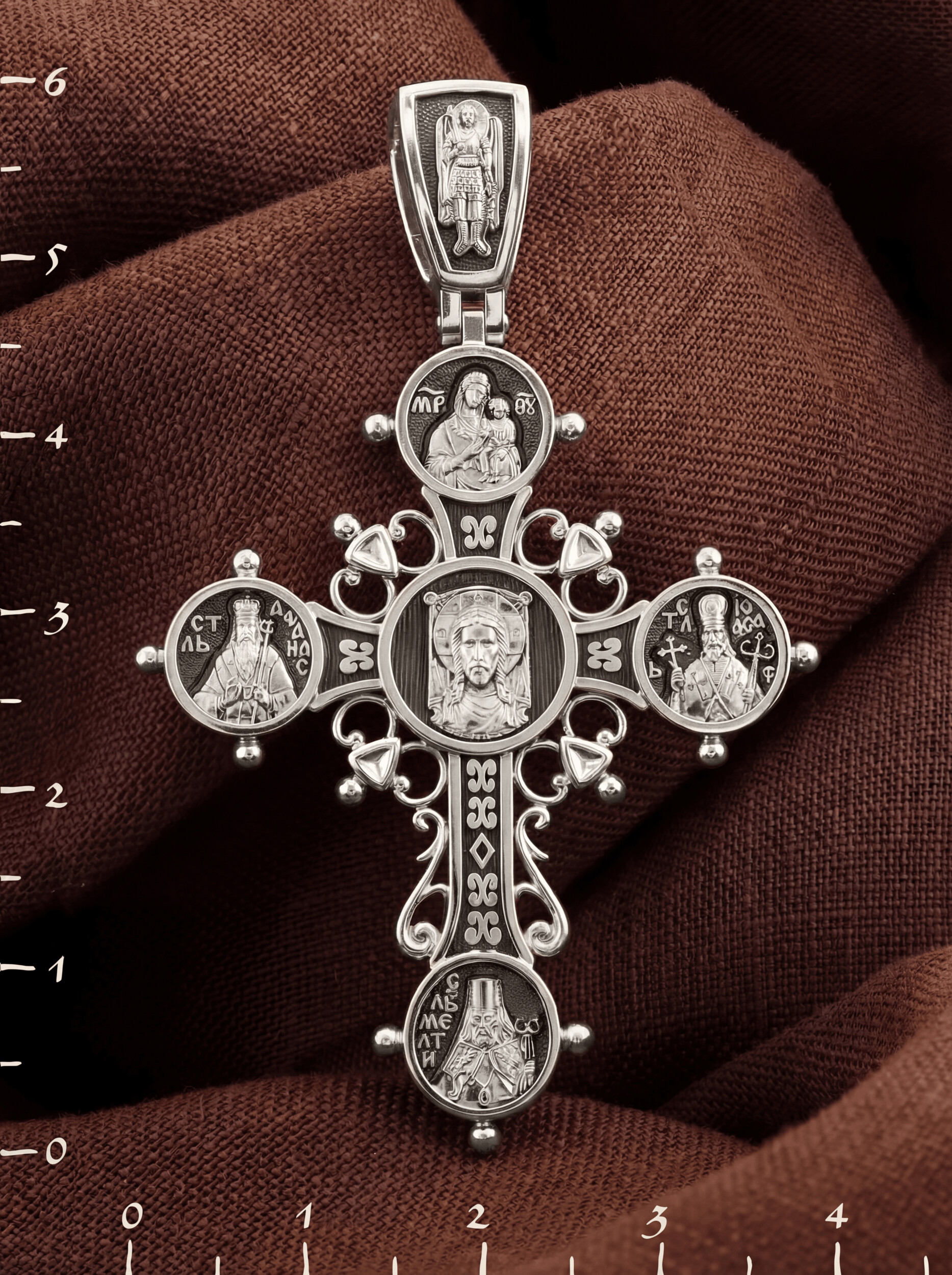 Оборотная сторона креста украшена растительным орнаментом. Помещенный на крест орнамент символизирует жизнедательную силу, животворное тепло креста. В растительный узор, на горизонтальной перекладине, вписано молитвенное славословие: «Спаси и сохрани». Эта надпись означает непрерывную молитву, совершаемую носителем данного креста.