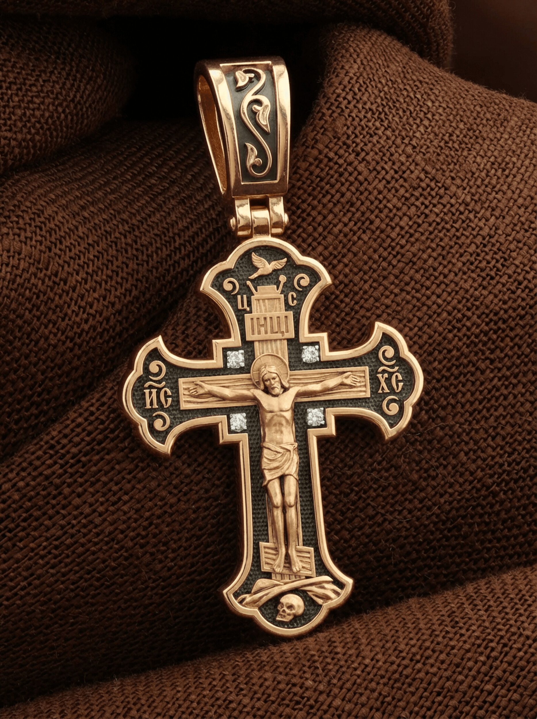 Форма этого креста с «криновидным», то есть похожим на стилизованные цветы лилий, окончанием балок, обращает нас к великому искусству византийской империи. Такие кресты широко употреблялись в Византии, а позднее, на Руси носили нательные крестики этой формы.