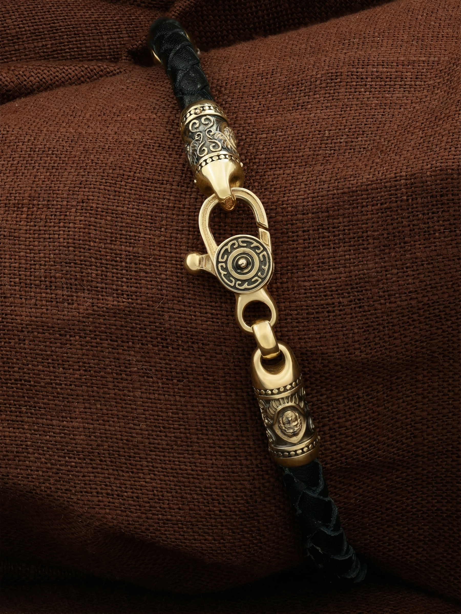 Браслет из лимонного золота c кожаным шнурком
