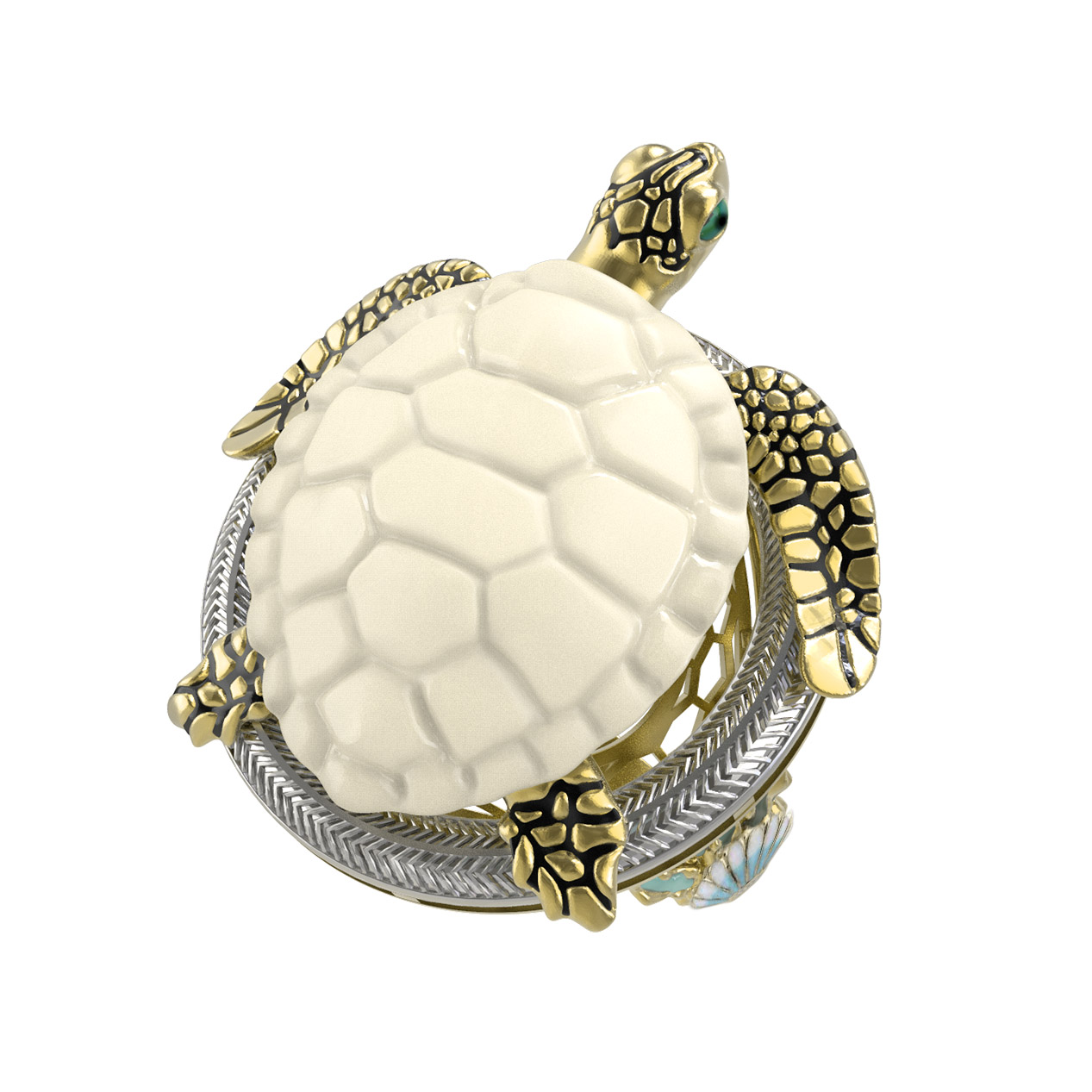 Кольцо из лимонного золота c эмаль и бивнем мамонта