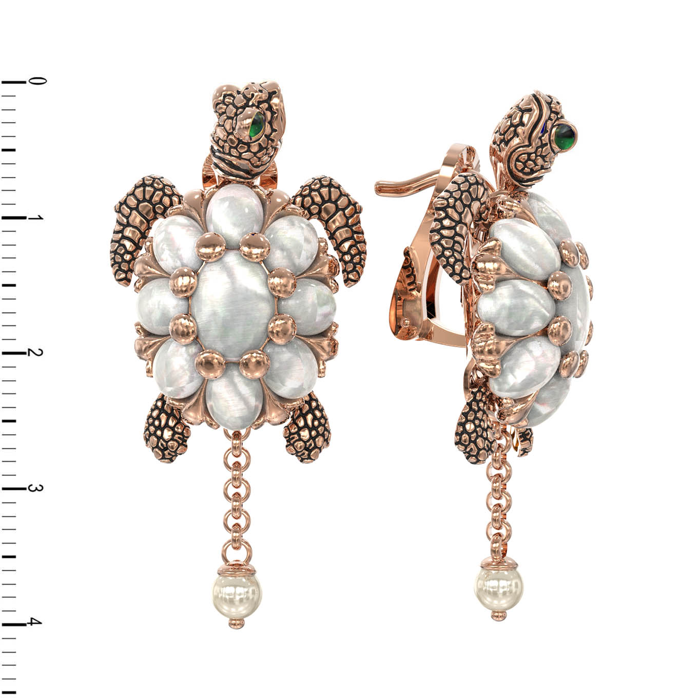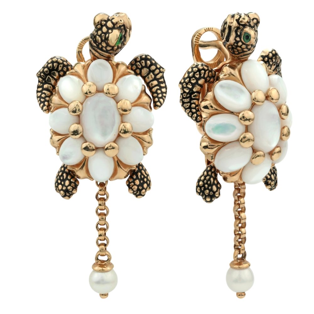 Серьги из золота c эмаль, жемчугом и перламутром