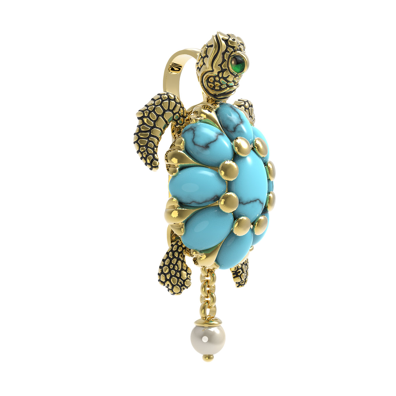 Подвеска из лимонного золота c эмалью, жемчугом и бирюзой