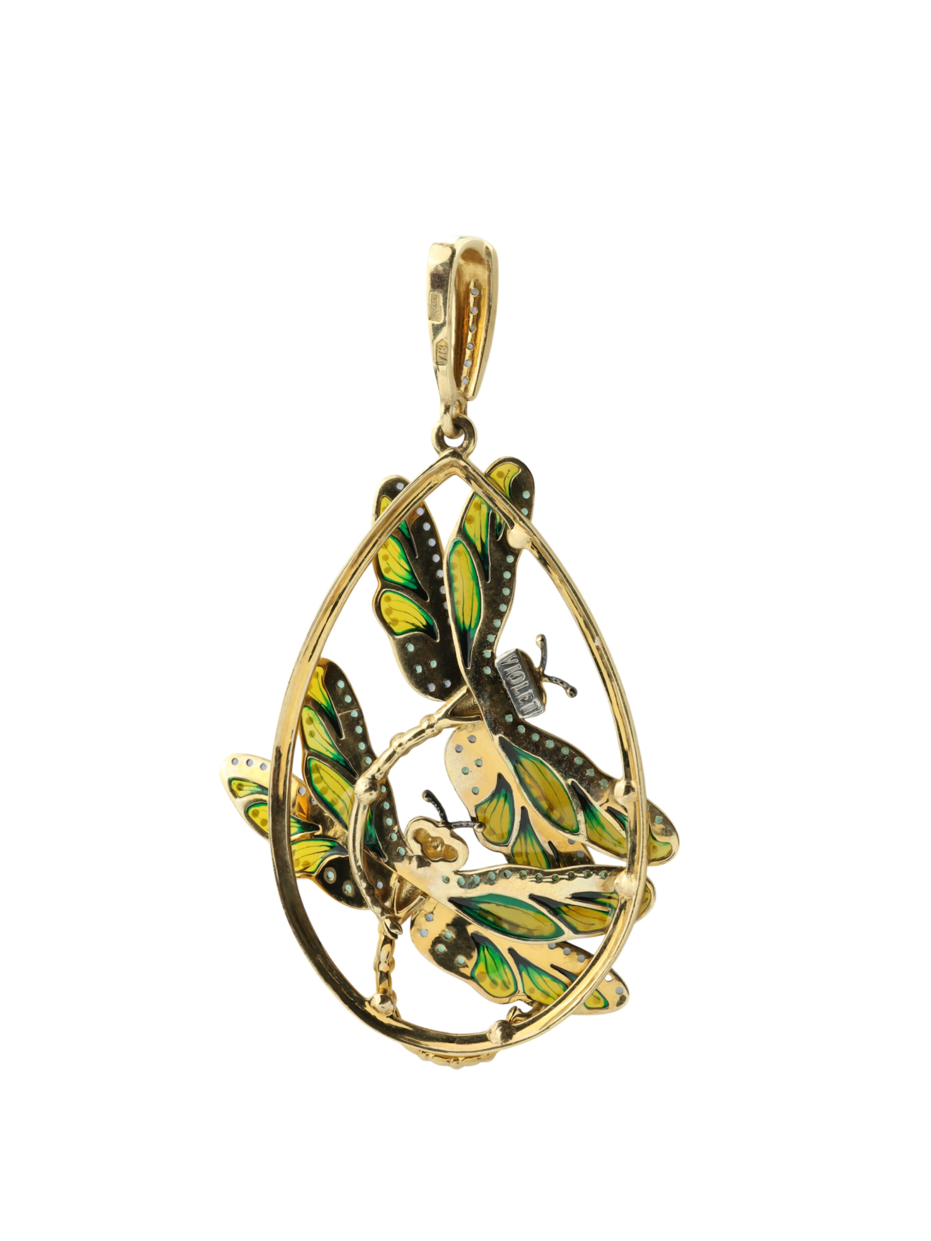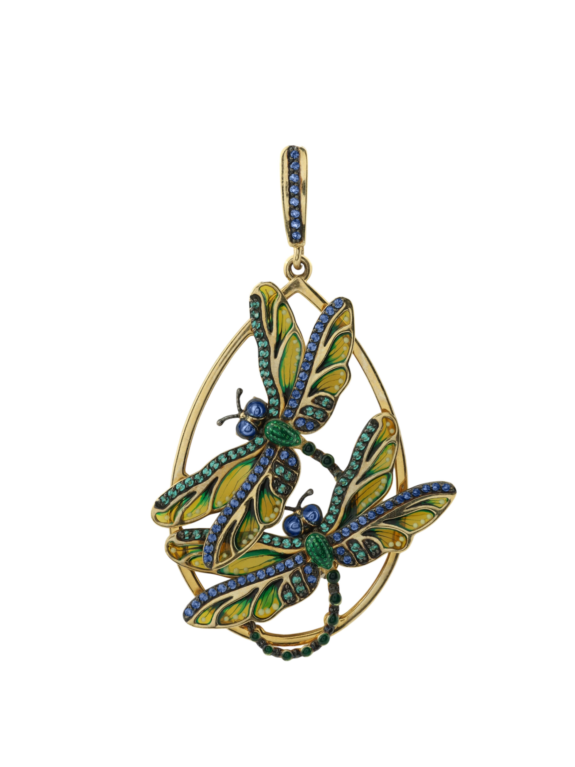 Подвеска из лимонного золота c сапфиром, изумрудом и эмалью