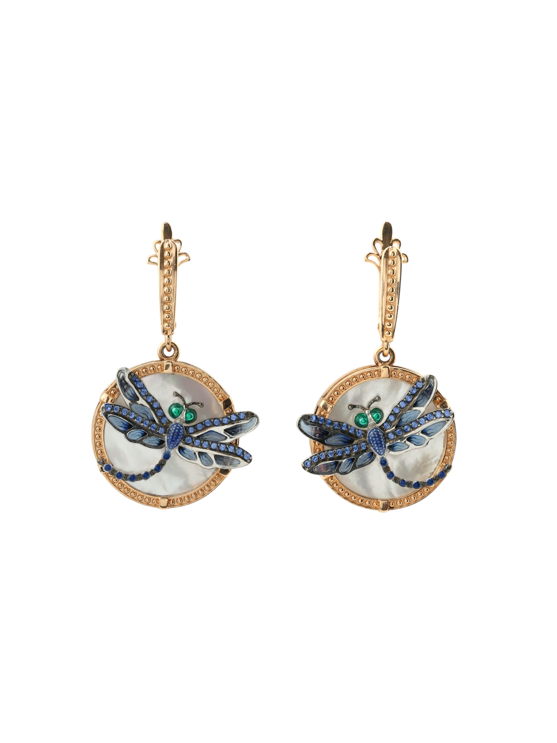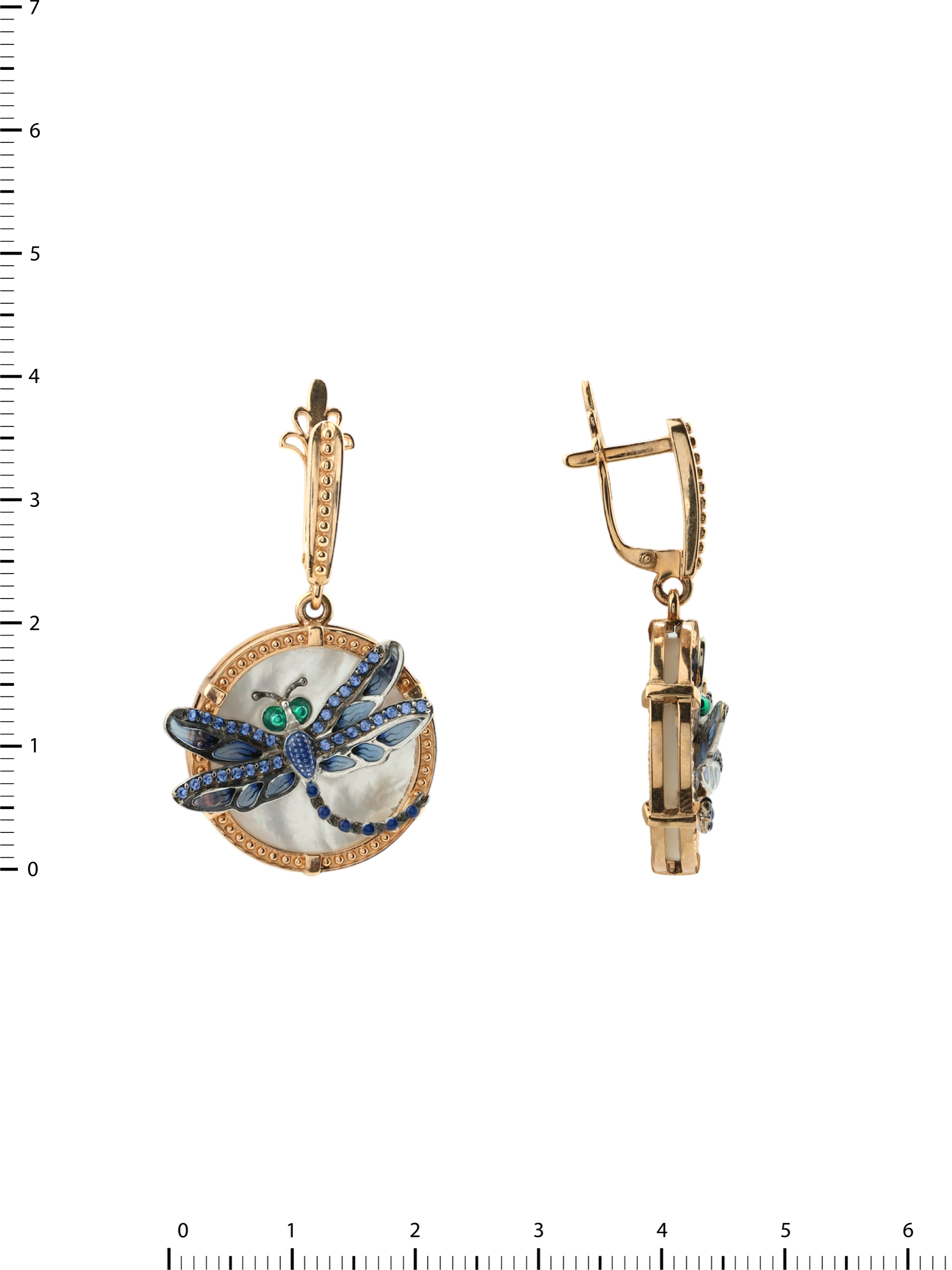 Серьги из золота c сапфиром, эмалью и перламутром