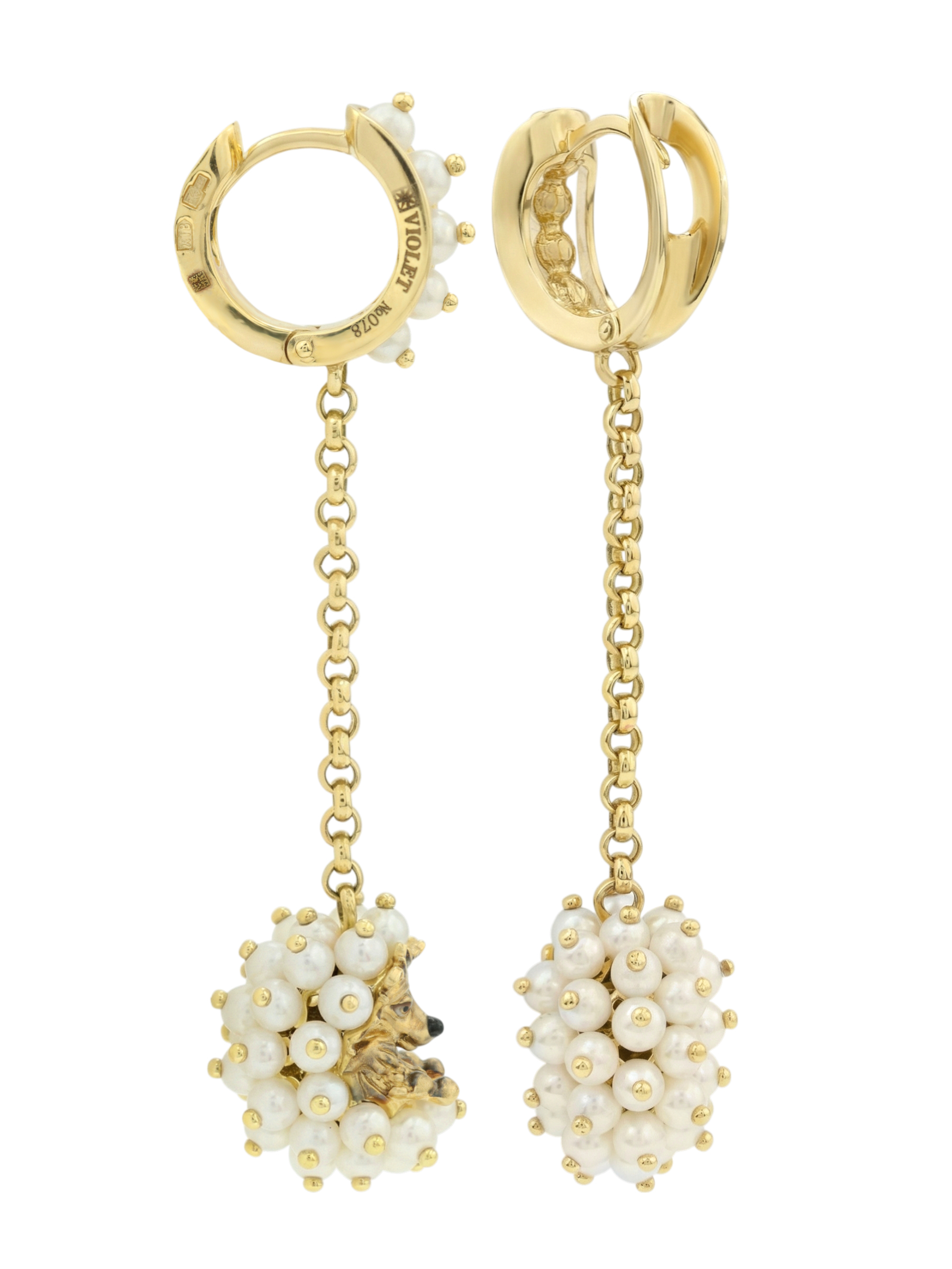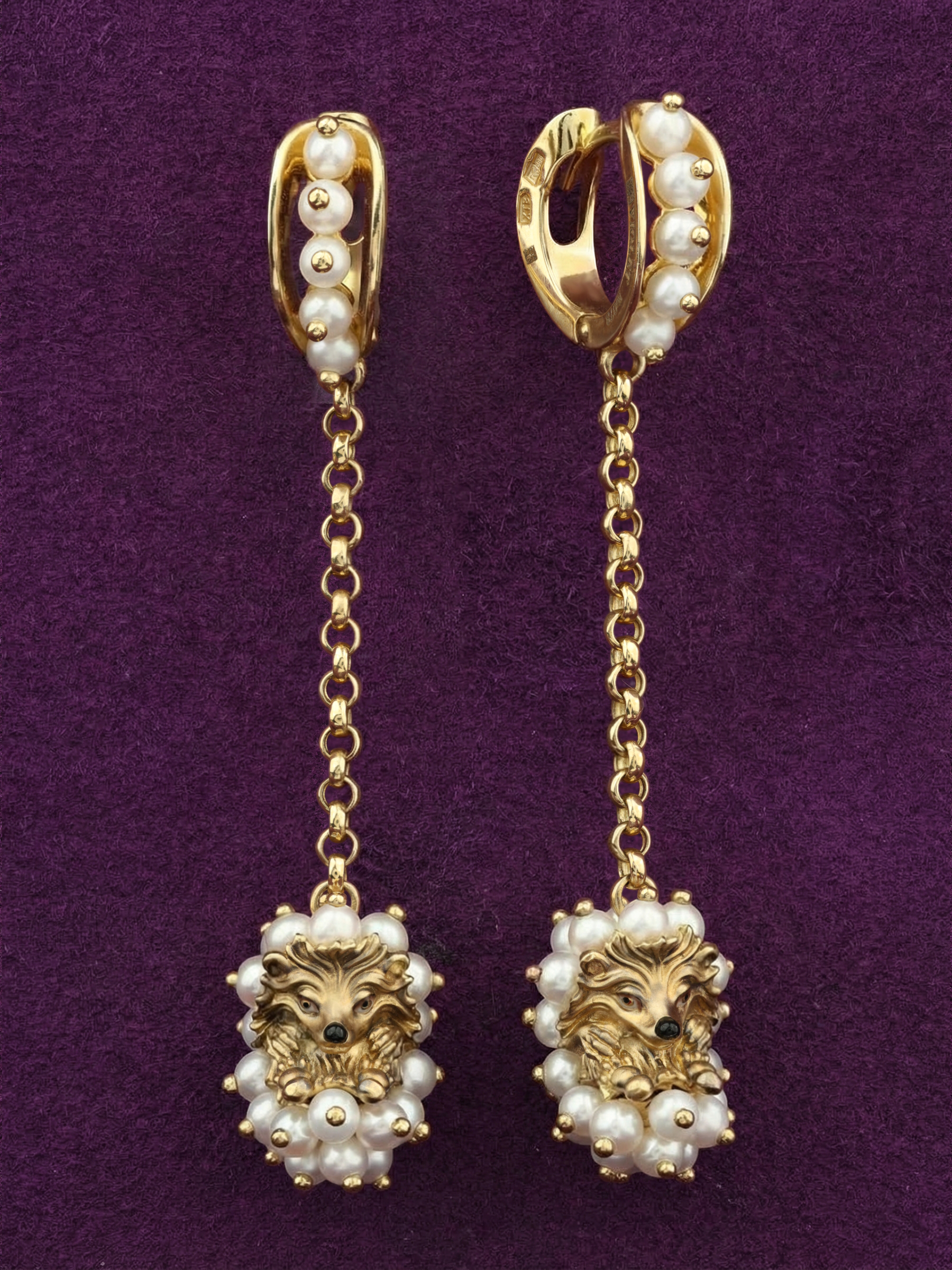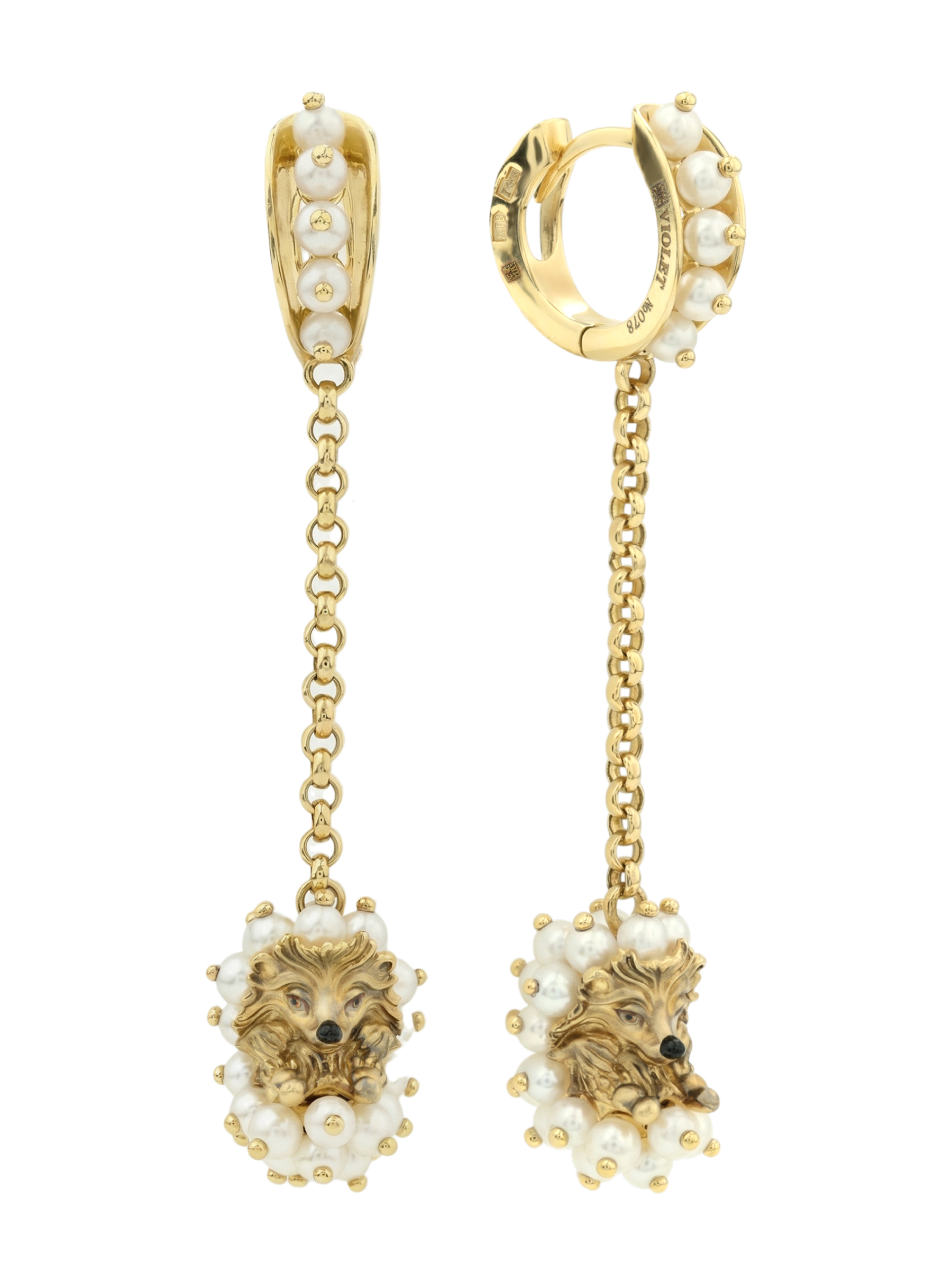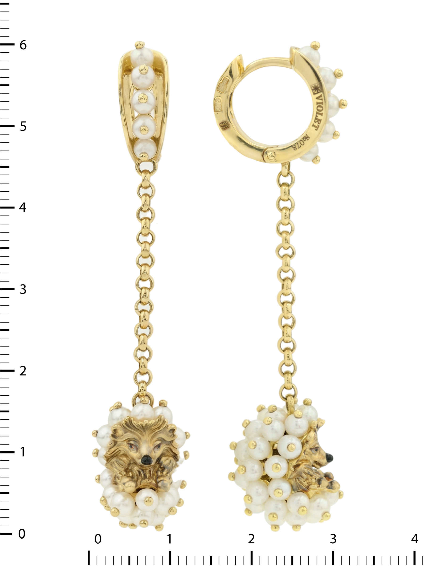 Серьги из лимонного золота c эмалью и жемчугом