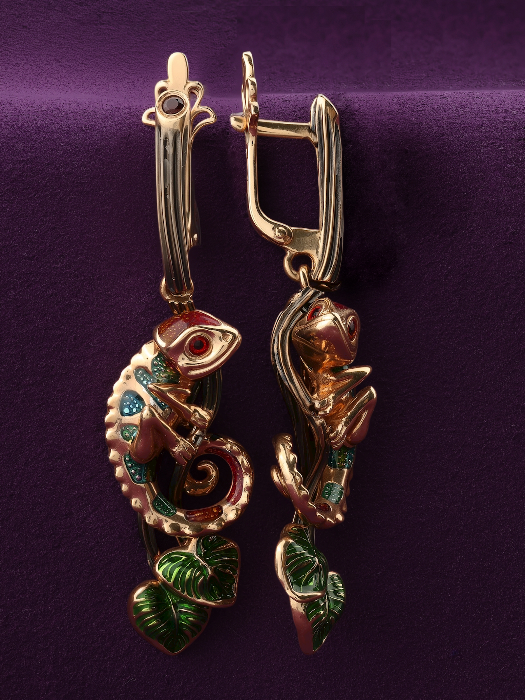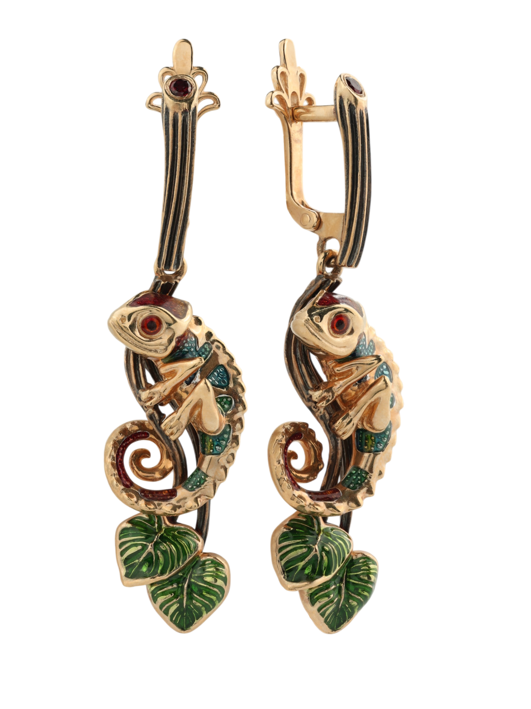 Серьги из золота c эмалью и гранатом
