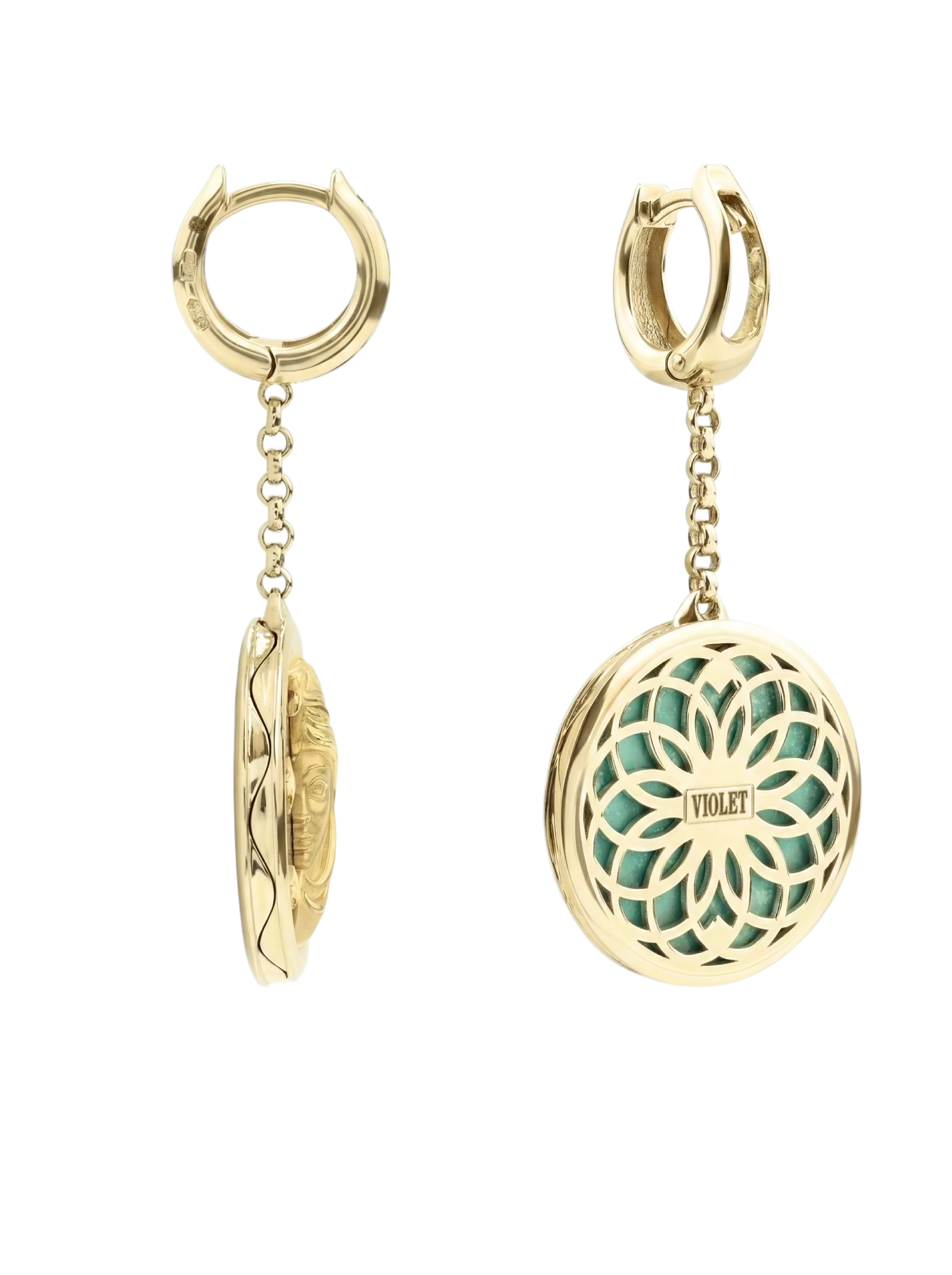 Серьги из лимонного золота c бирюзой и лазуритом