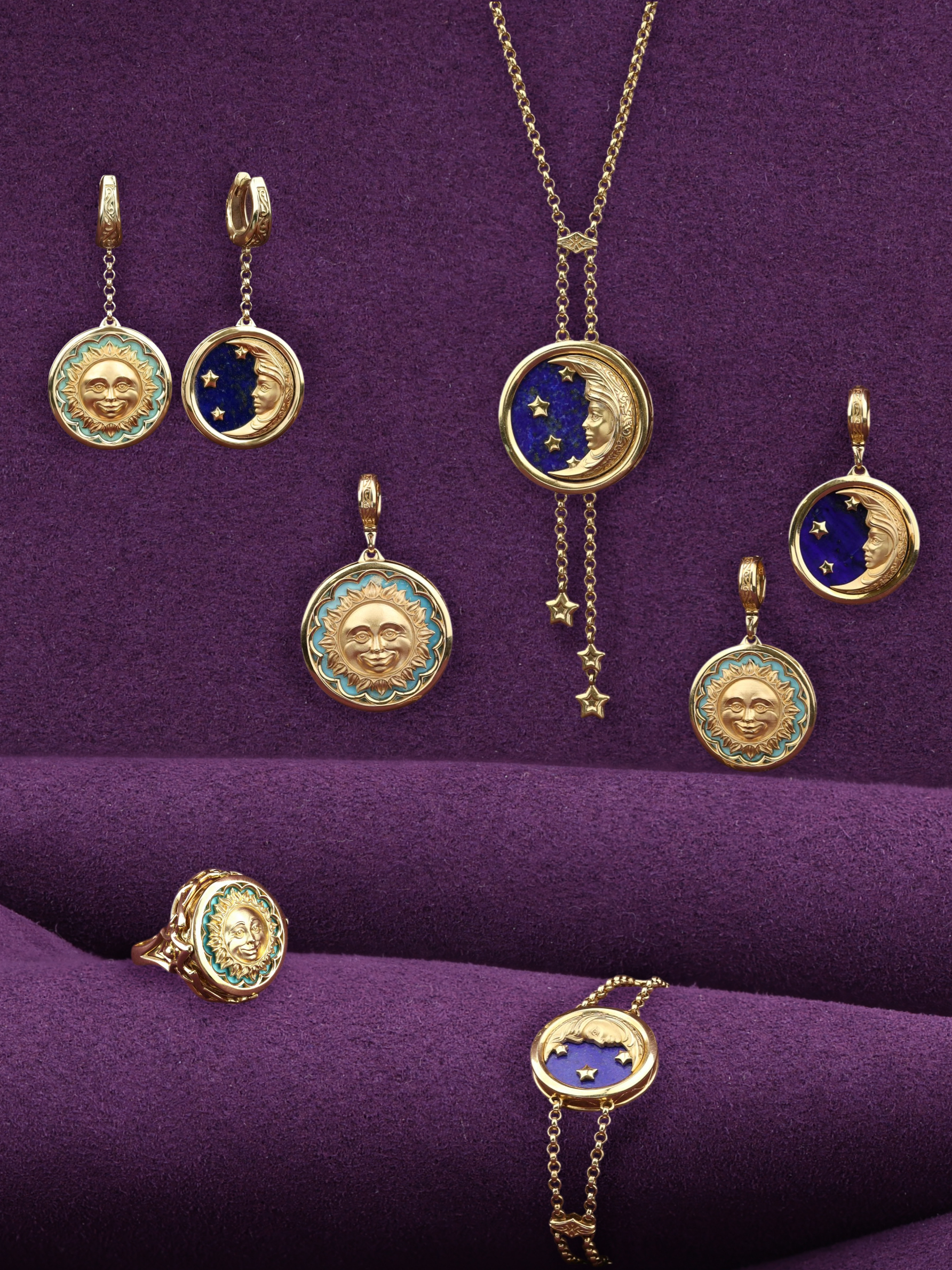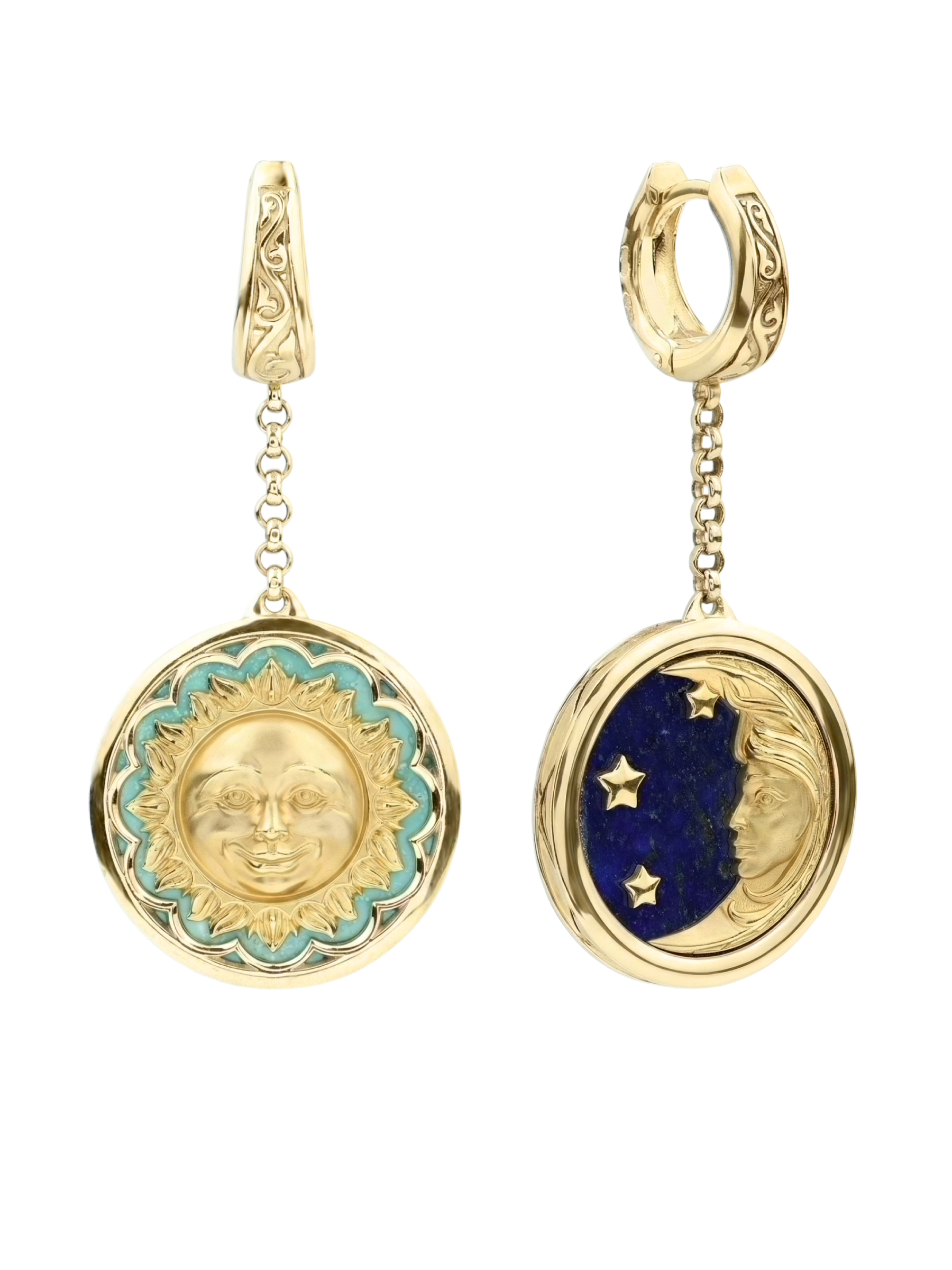 Серьги из лимонного золота c бирюзой и лазуритом