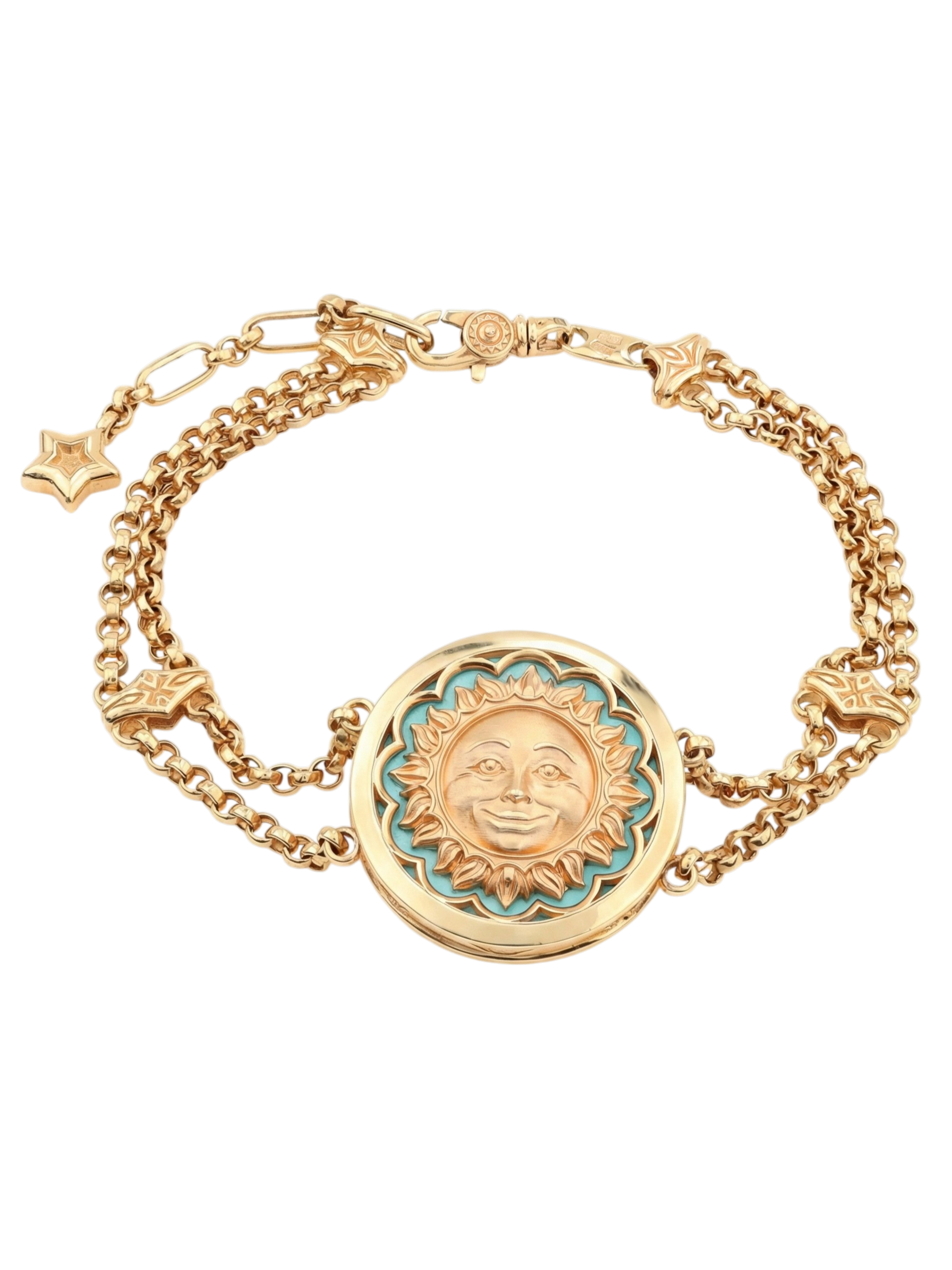 Браслет из лимонного золота c бирюзой и лазуритом