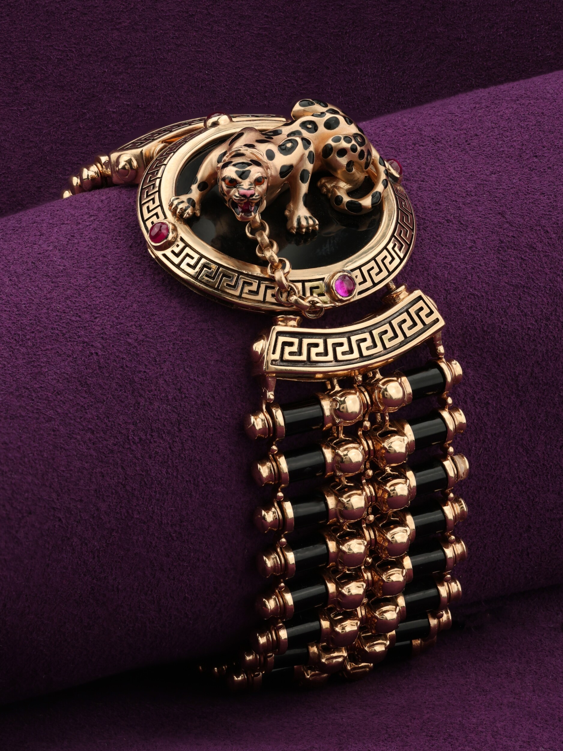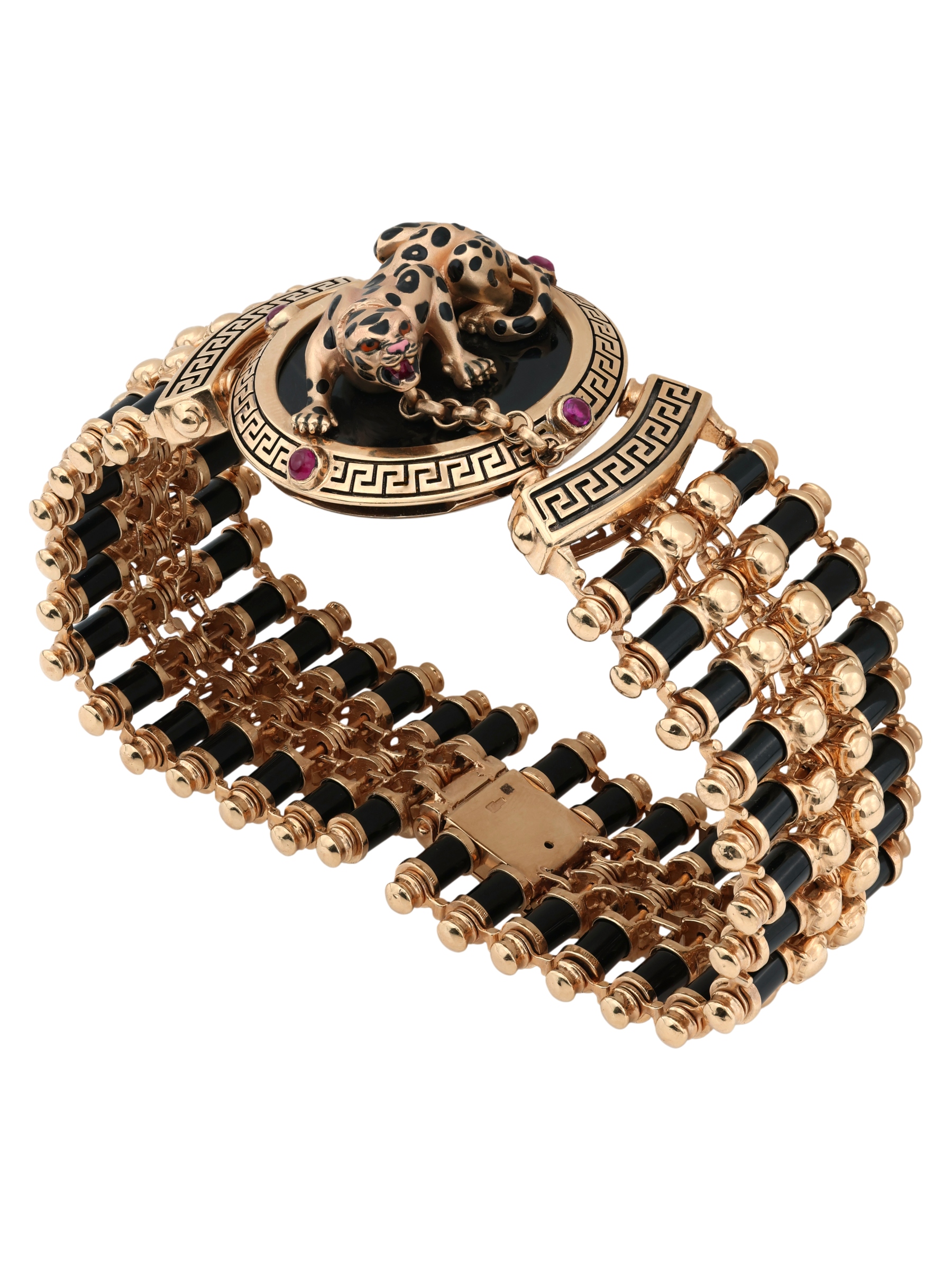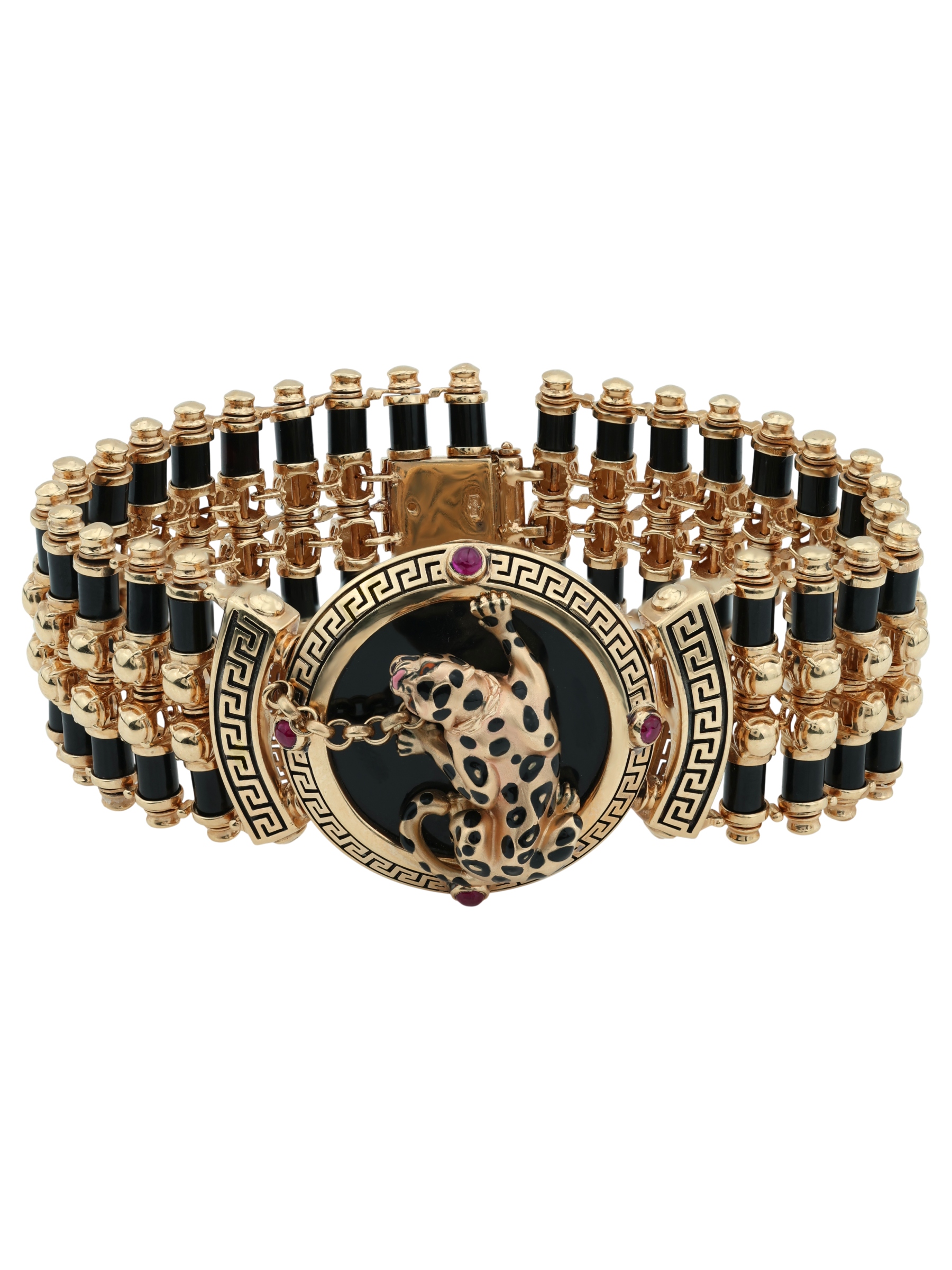 Браслет из золота c эмалью, ониксом и рубином