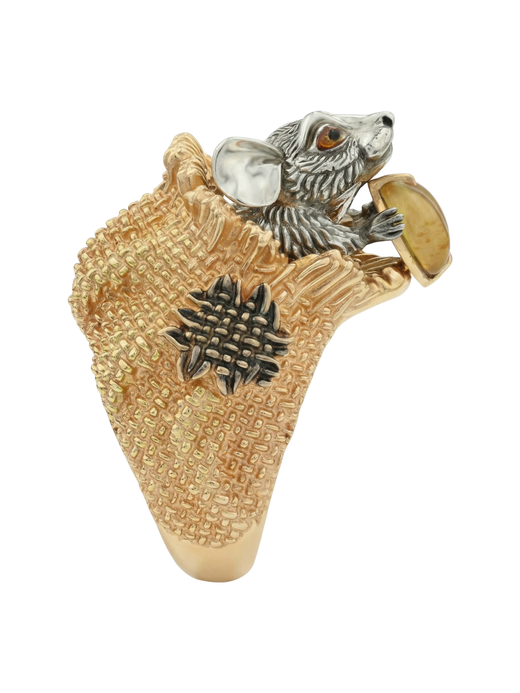 Кольцо из лимонного золота c эмаль и янтарём