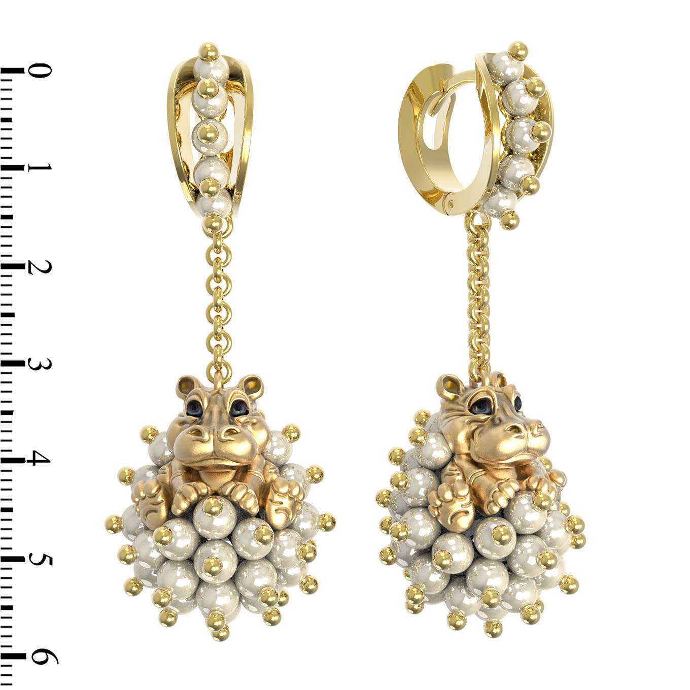 Серьги из лимонного золота c эмаль и жемчугом