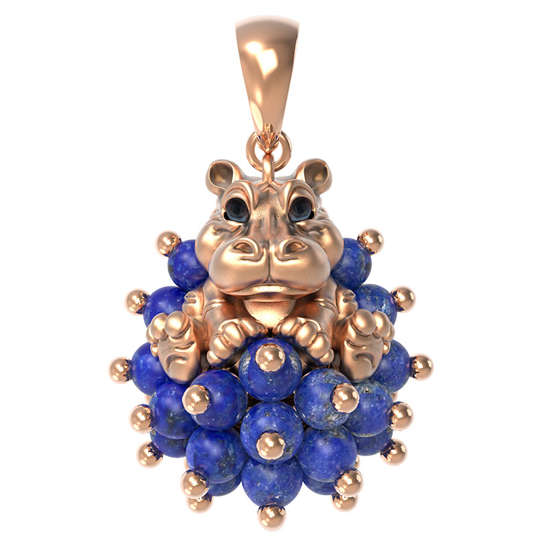 Подвеска из золота c эмаль и лазуритом