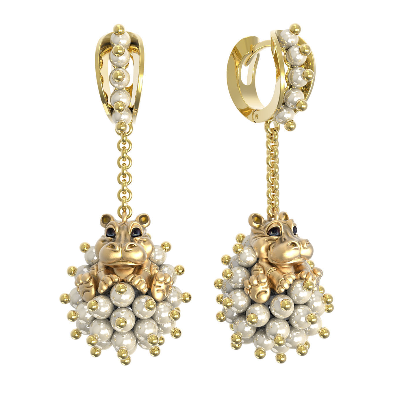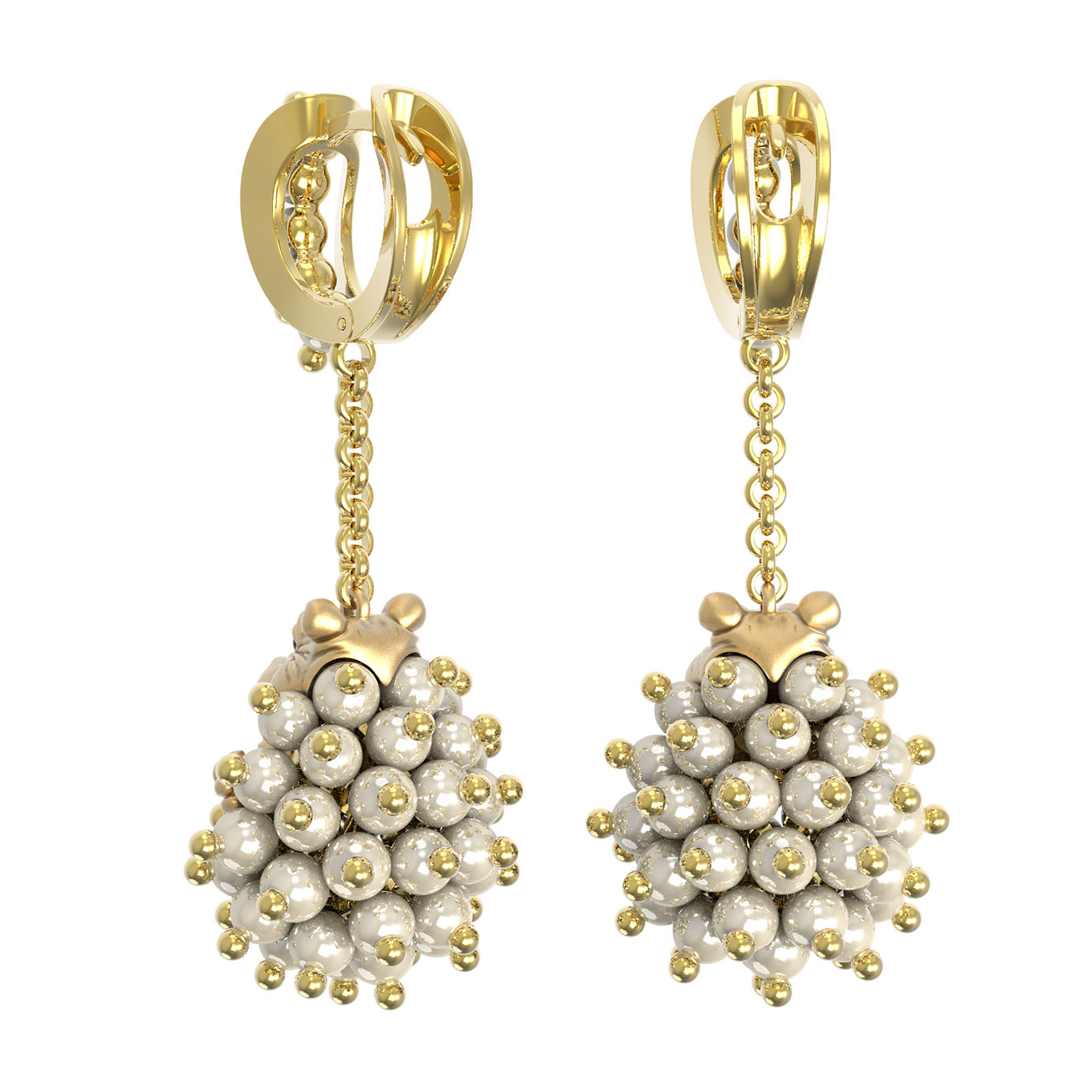 Серьги из лимонного золота c эмаль и жемчугом