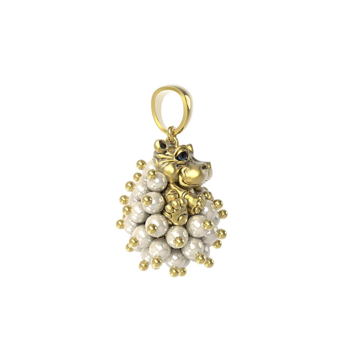 Подвеска из лимонного золота c эмаль и жемчугом