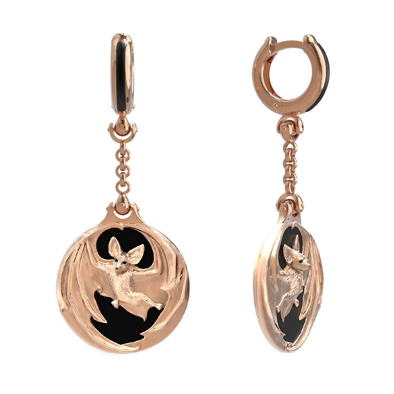 Серьги из золота c эмаль и ониксом
