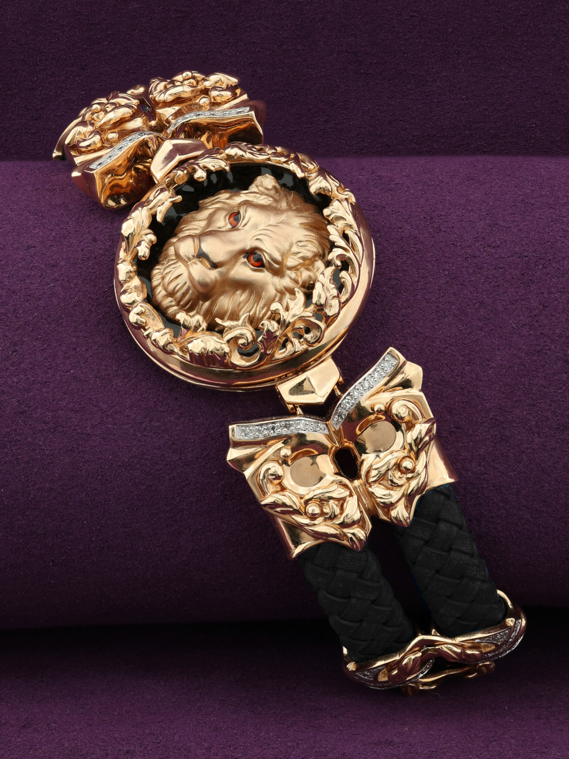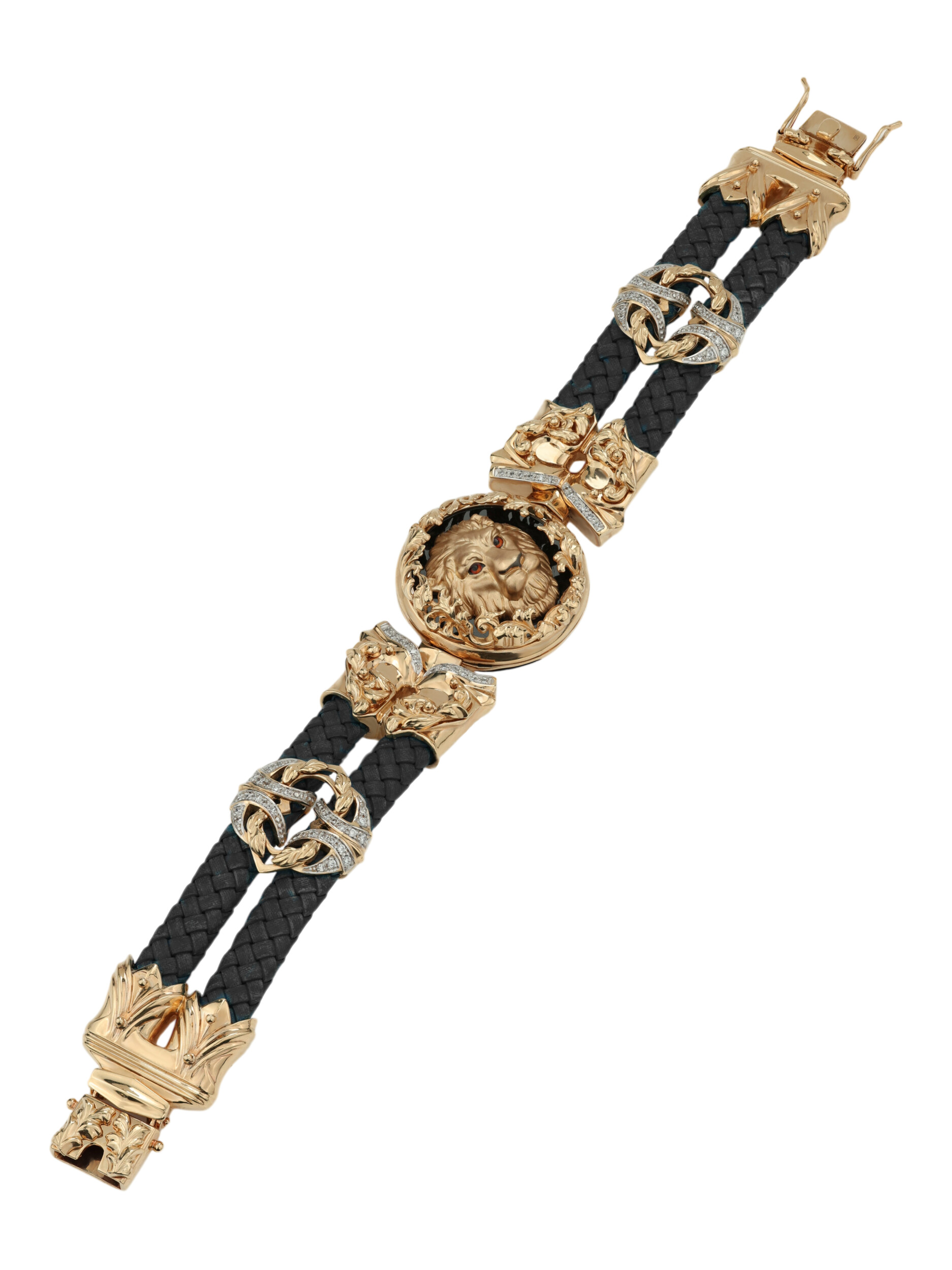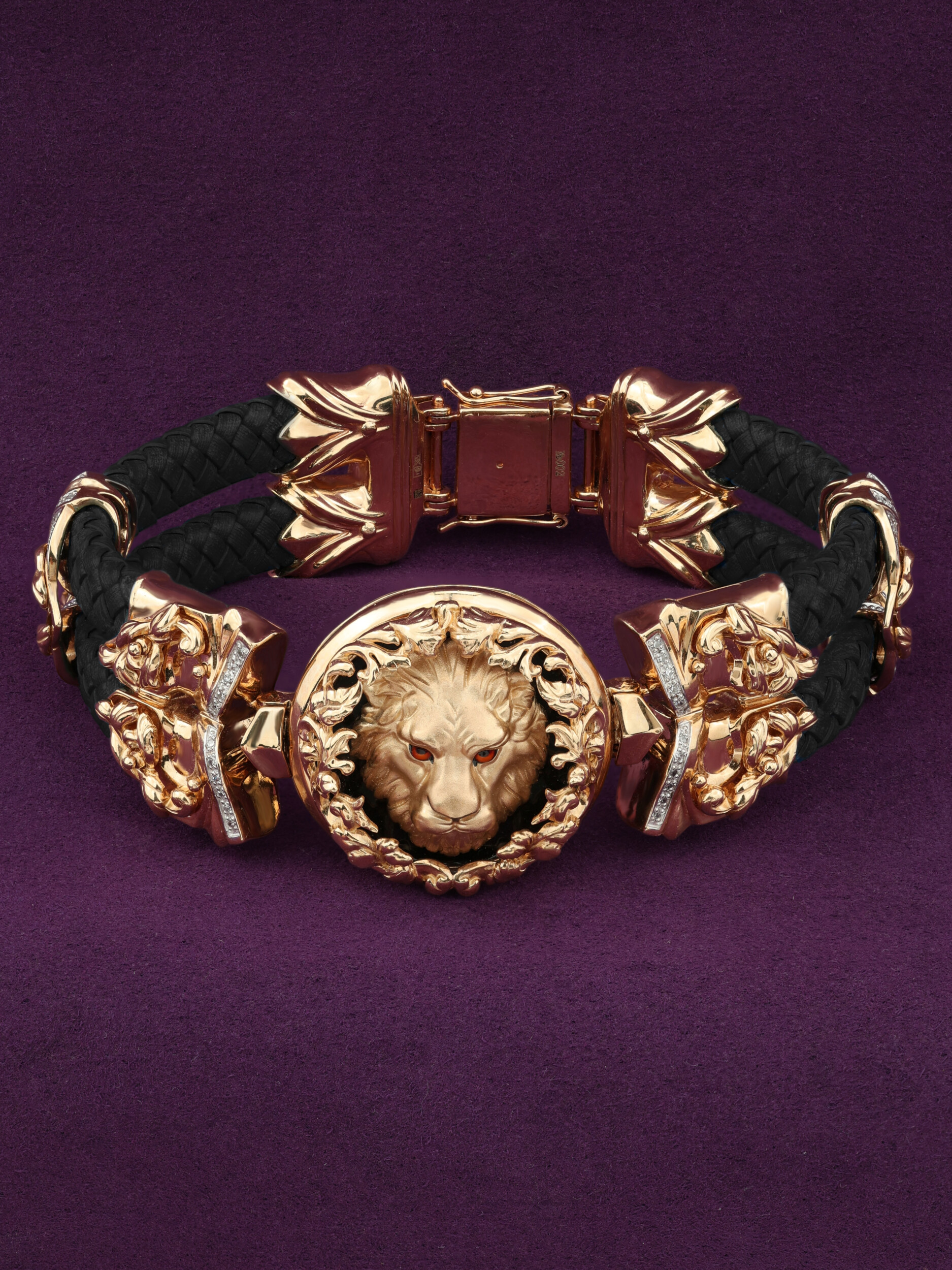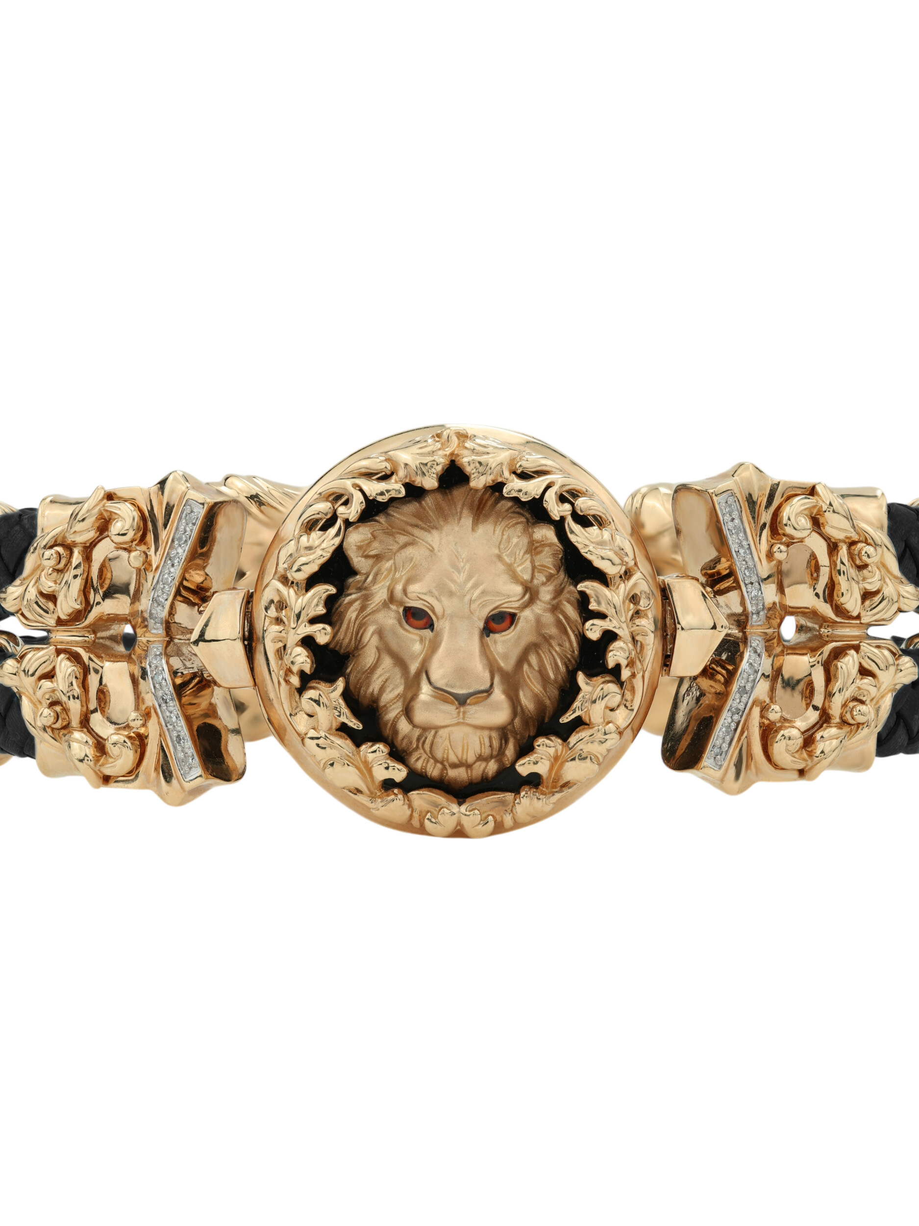 Браслет из золота c эмаль, бриллиантами, шнурком и ониксом