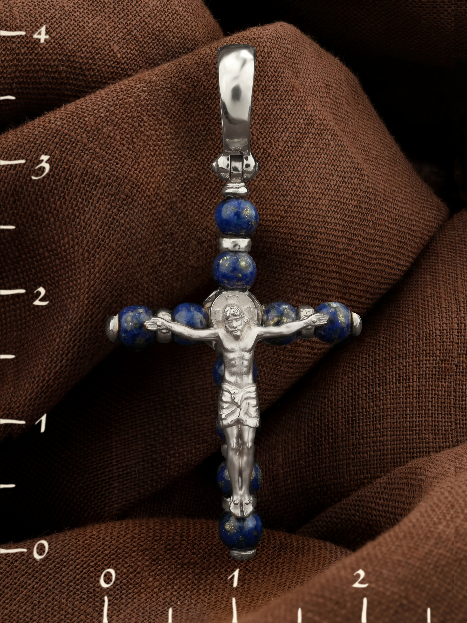 Крест из белого золота c лазуритом