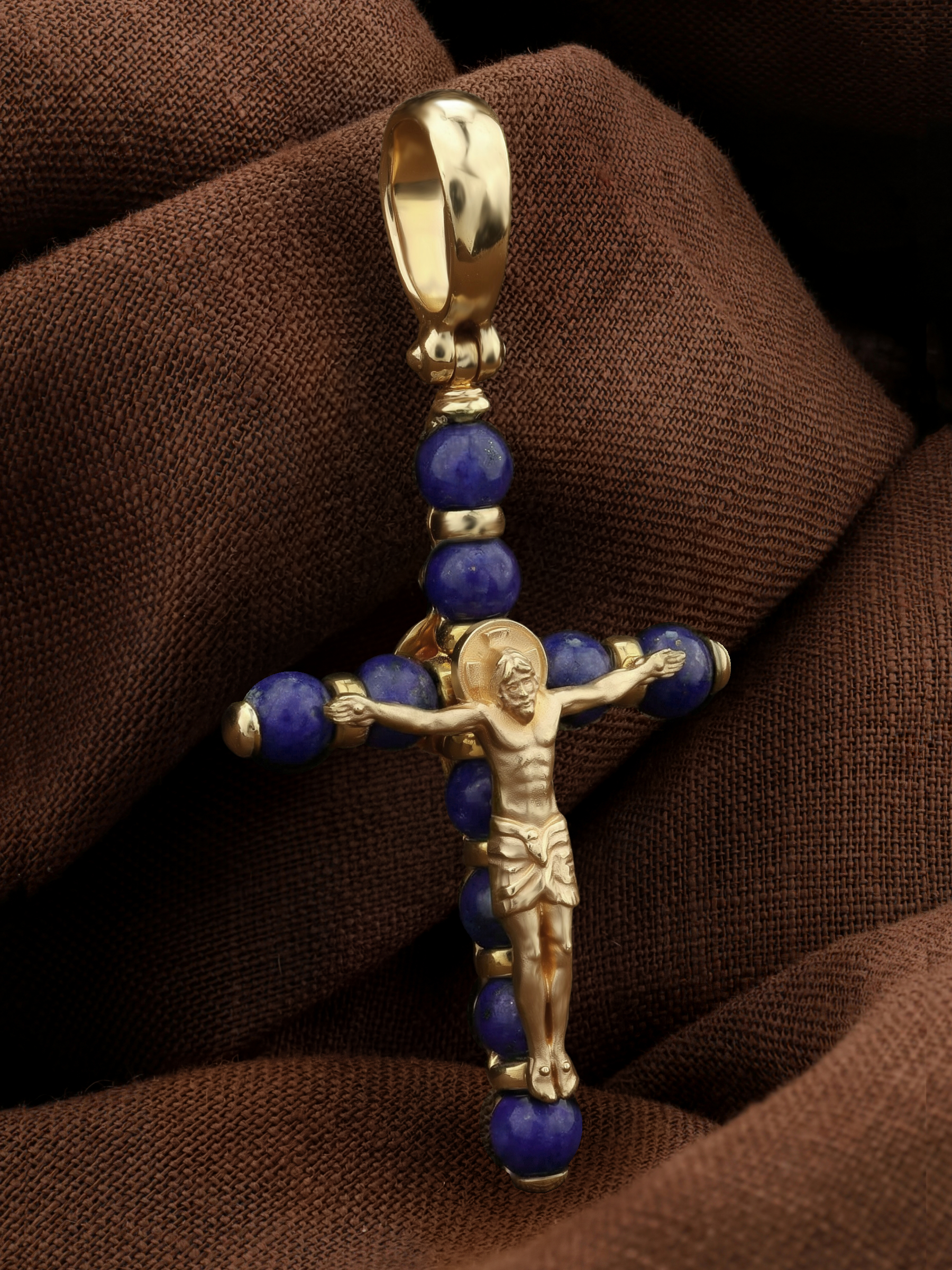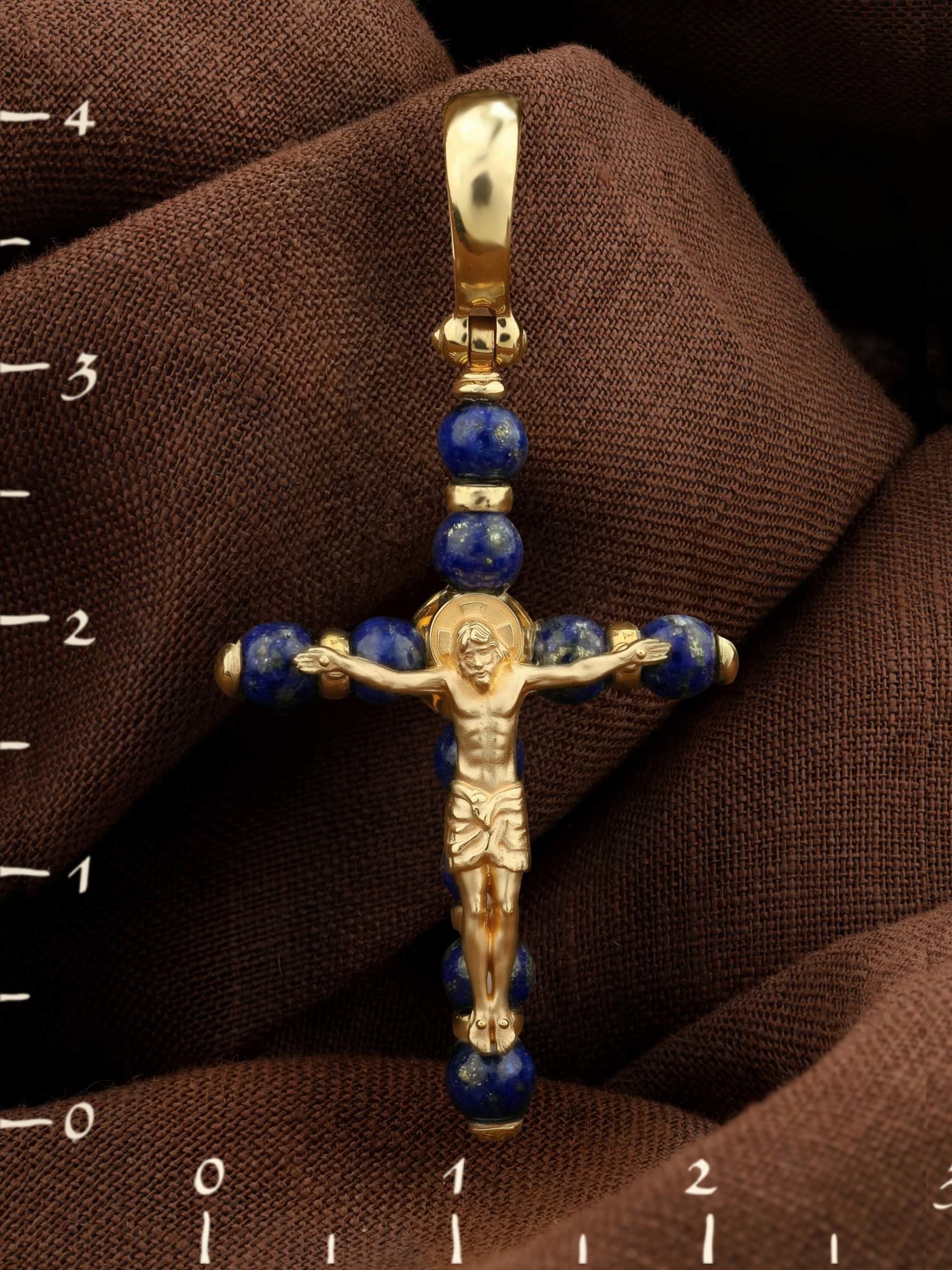 Крест из лимонного золота c лазуритом