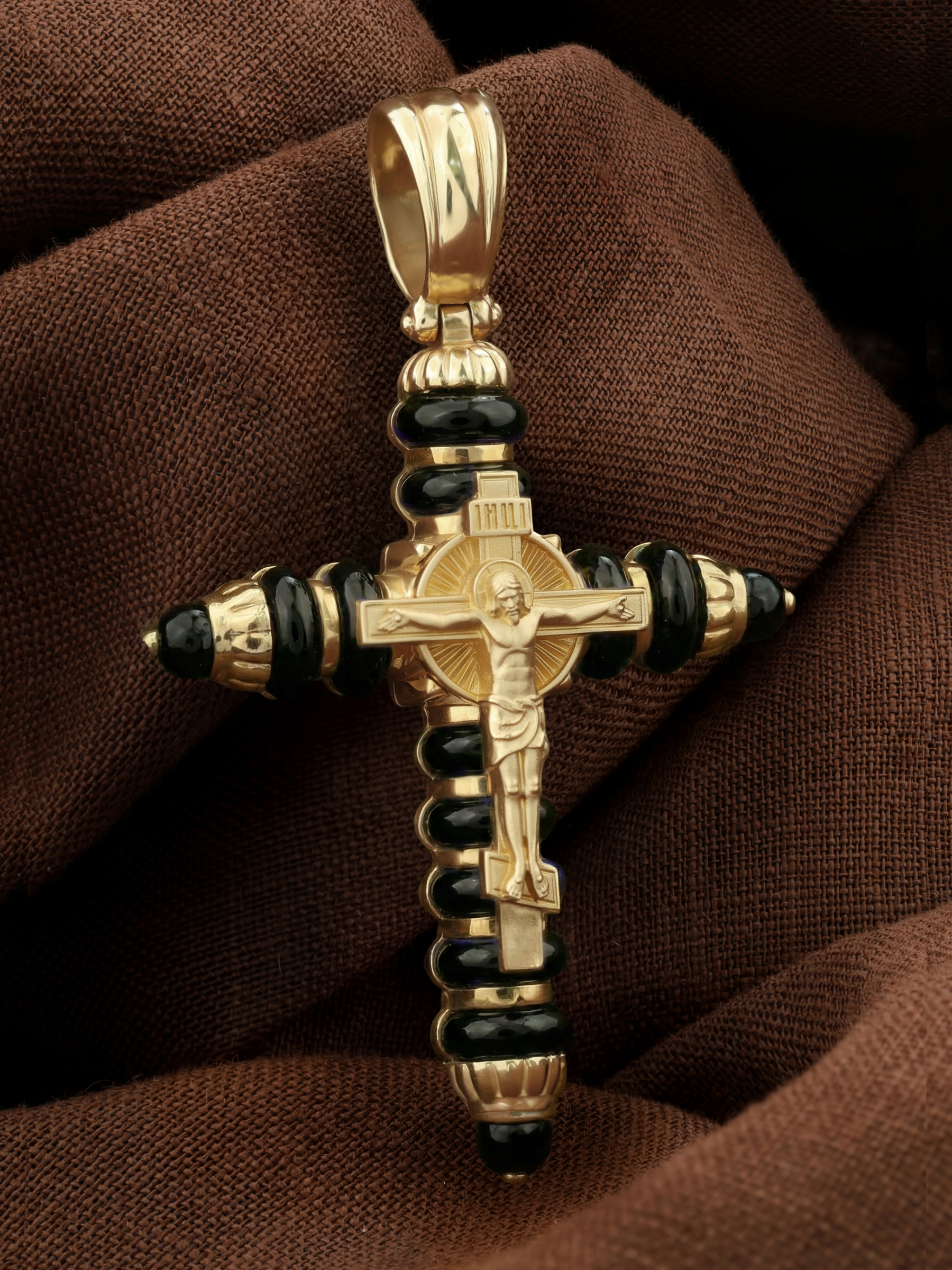 Крест из лимонного золота c ониксом