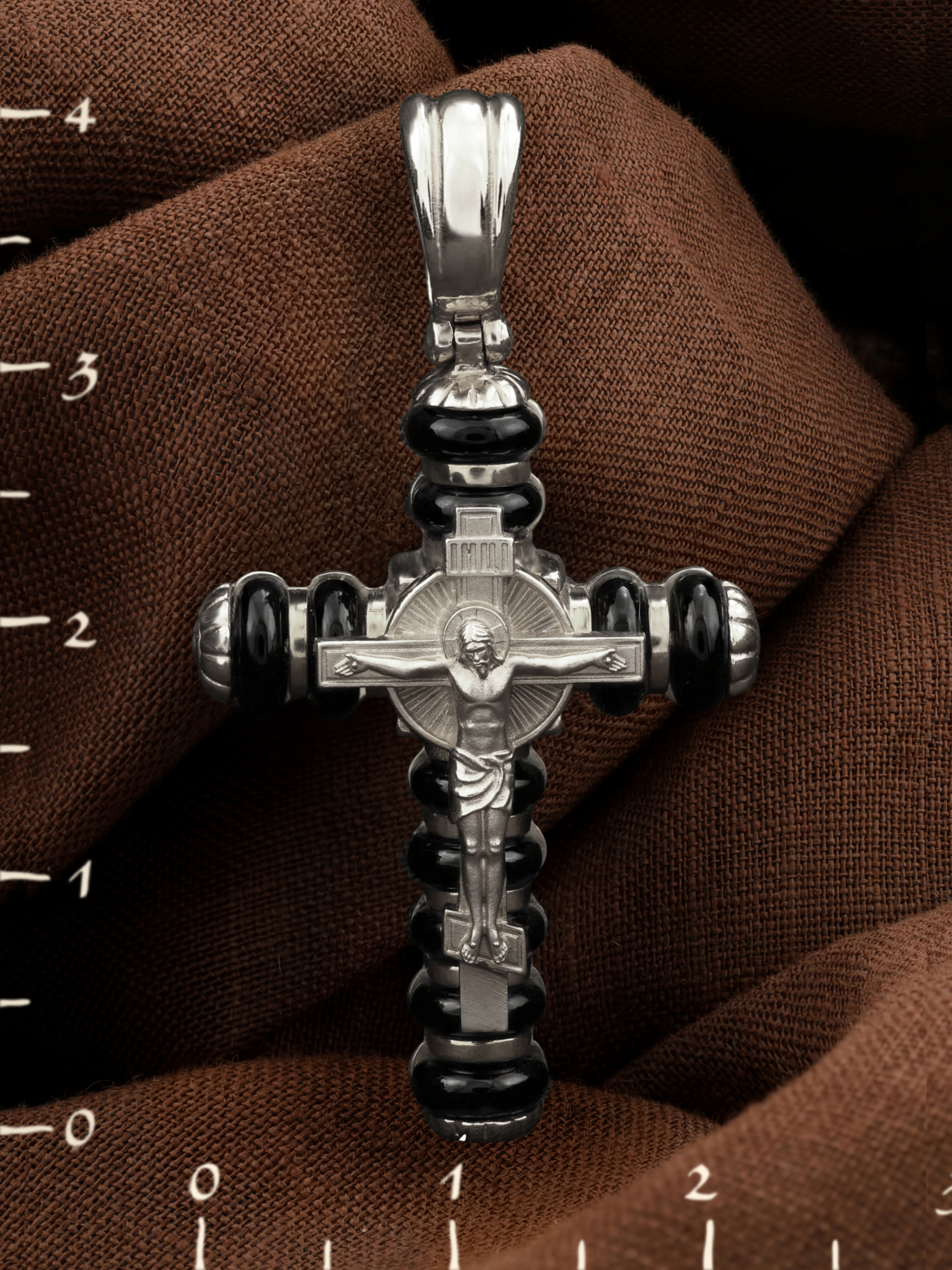 Крест из белого золота c ониксом
