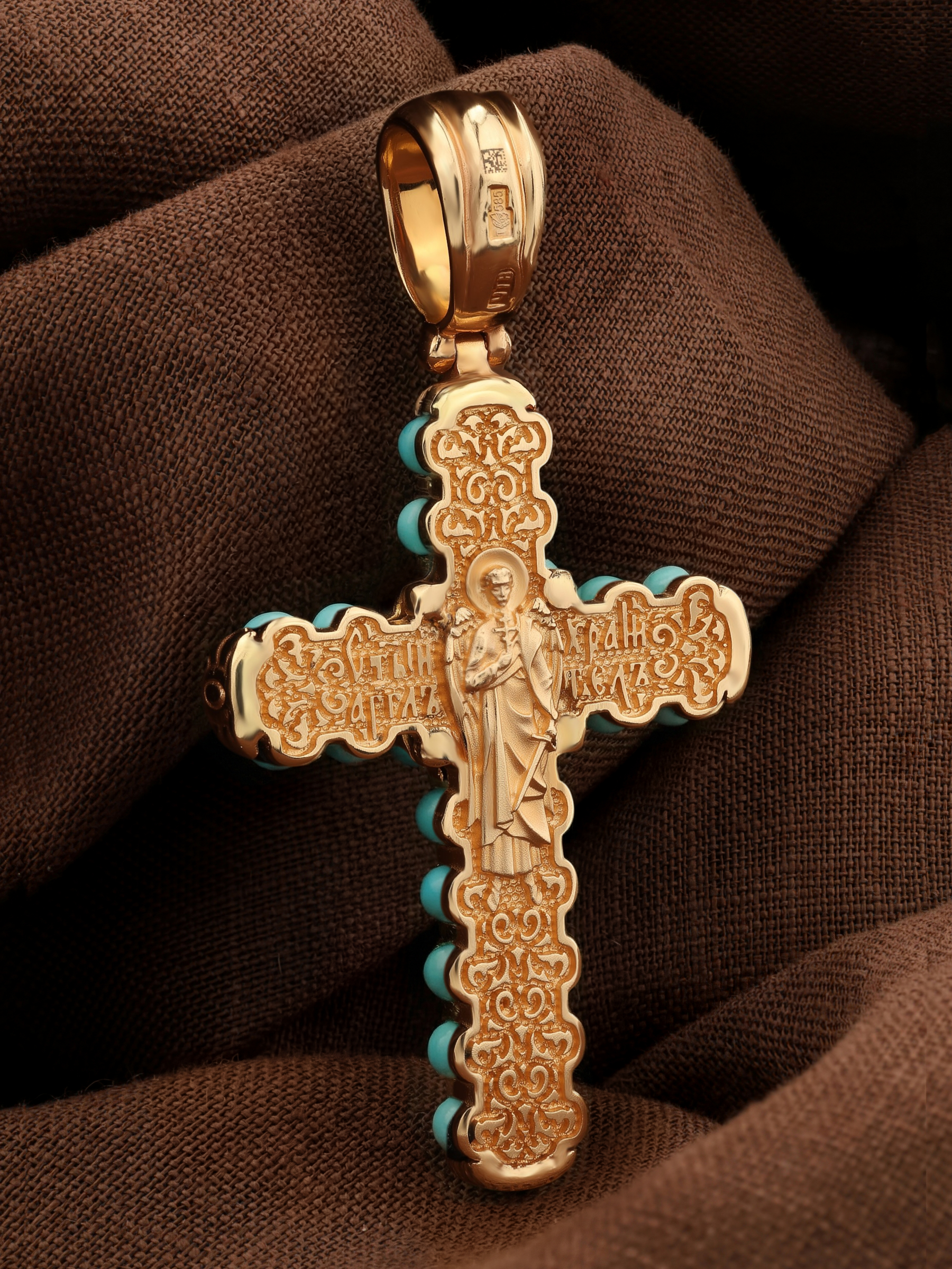 Крест из золота c бирюзой