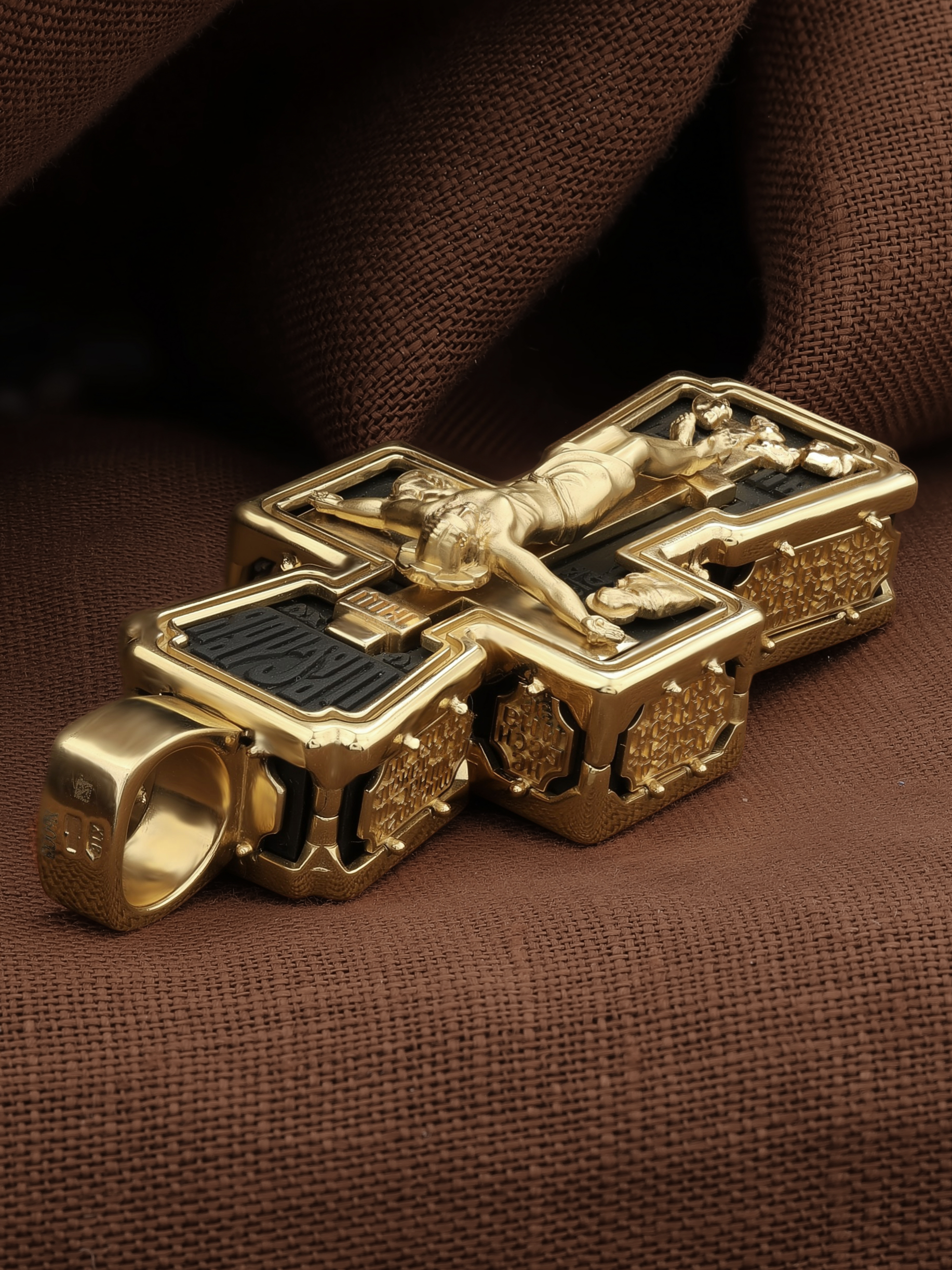 Крест из лимонного золота c эбеновым деревом