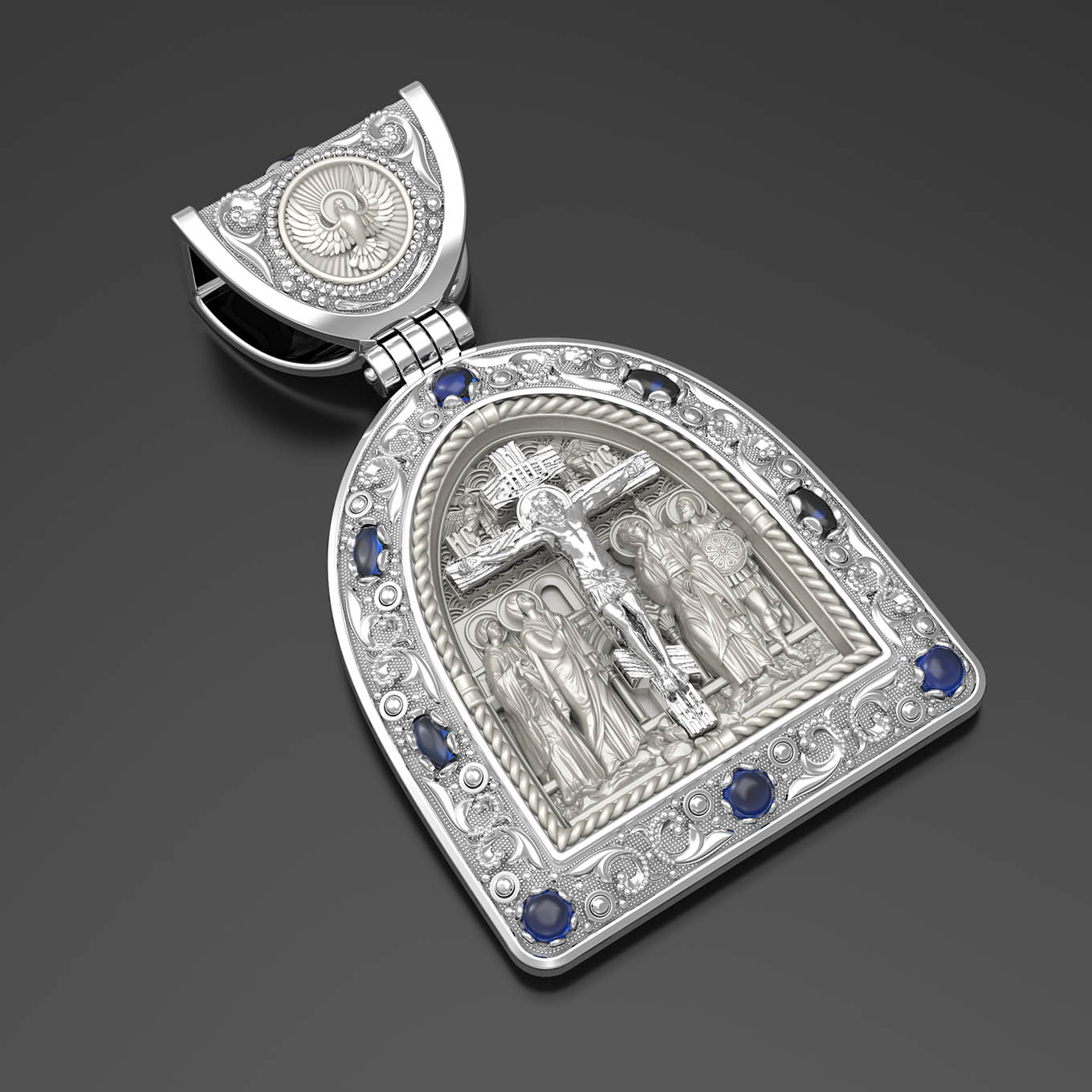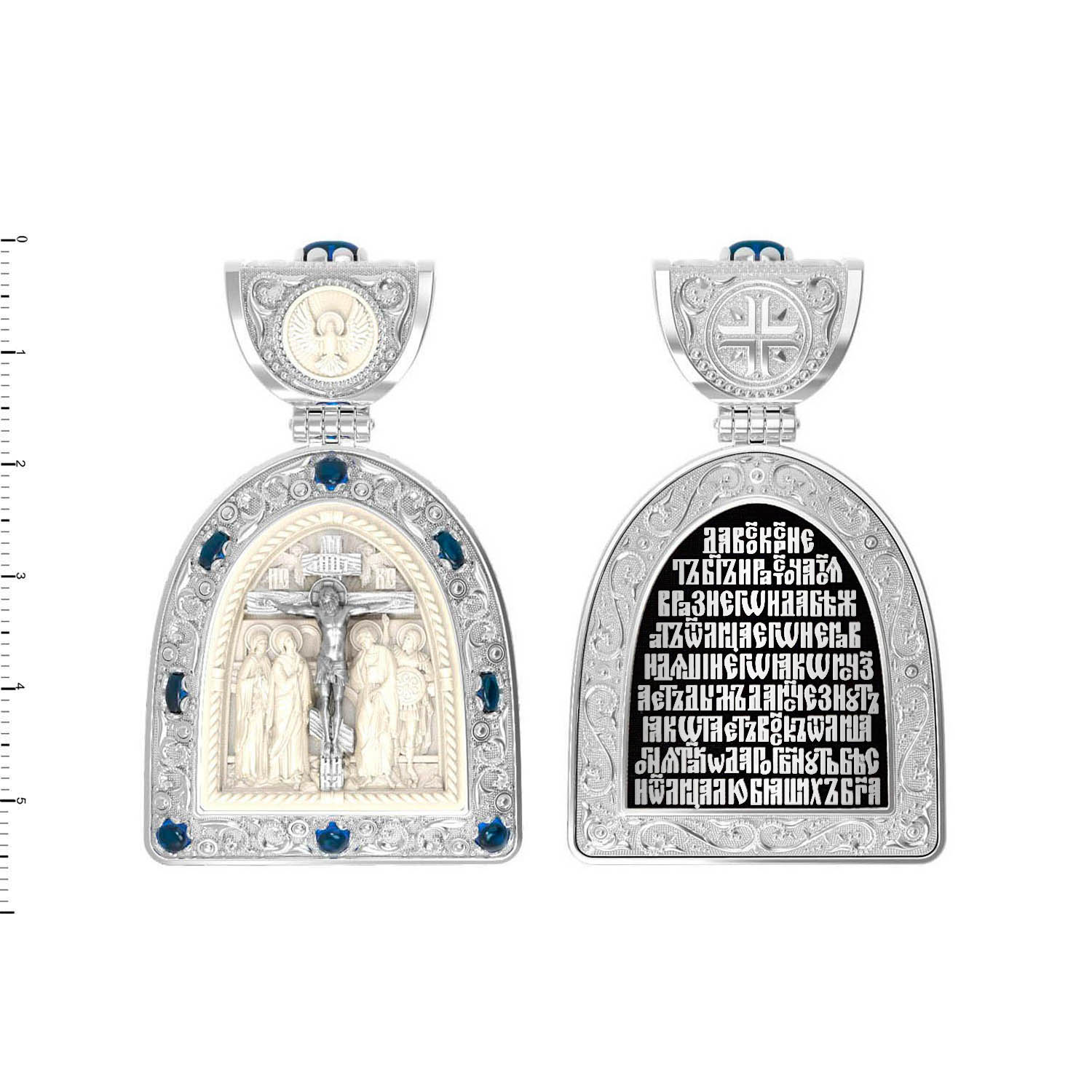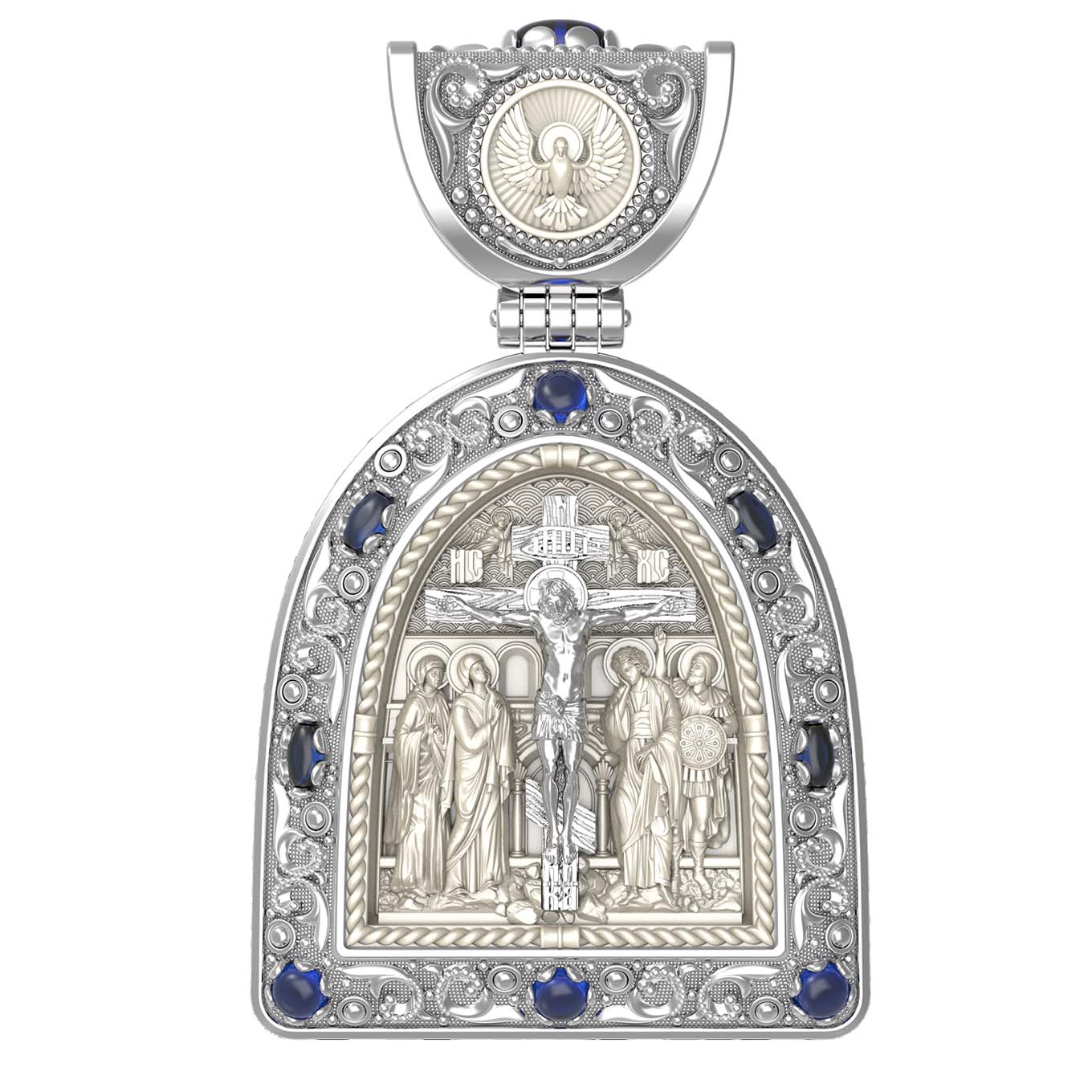 Образок из белого золота c эмалью, сапфиром и бивнем мамонта