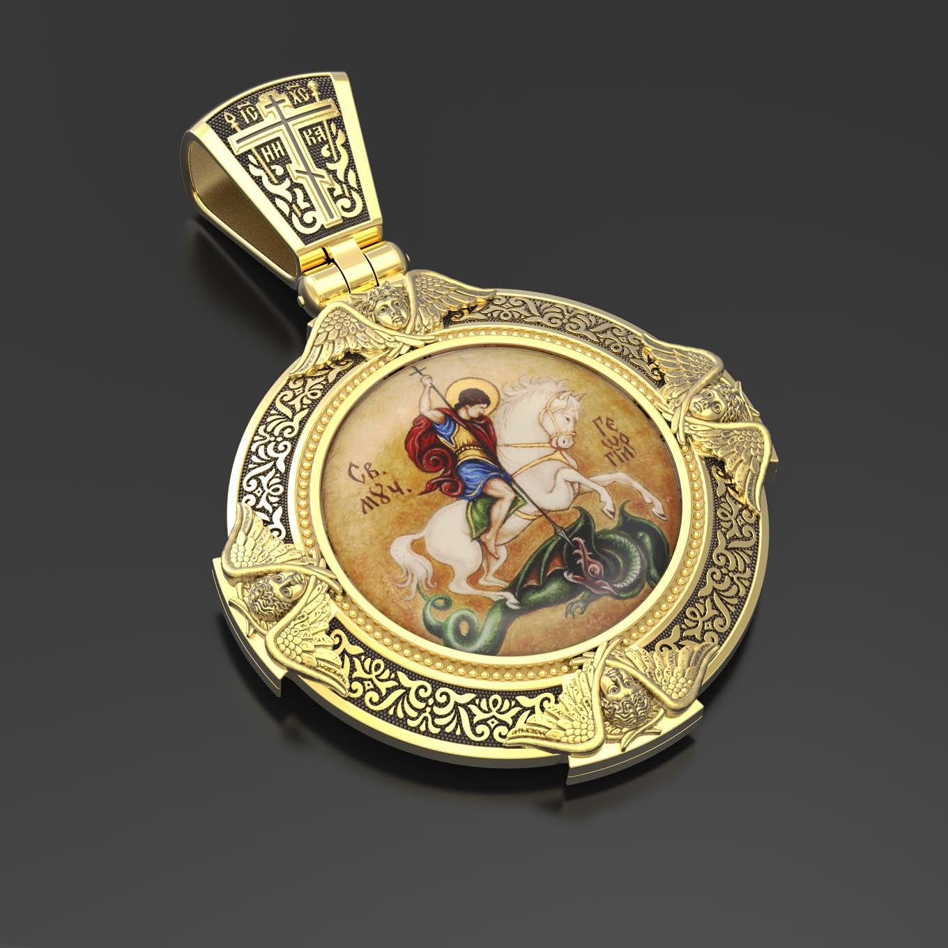 Образок из лимонного золота c эмаль, иконописью и темперой