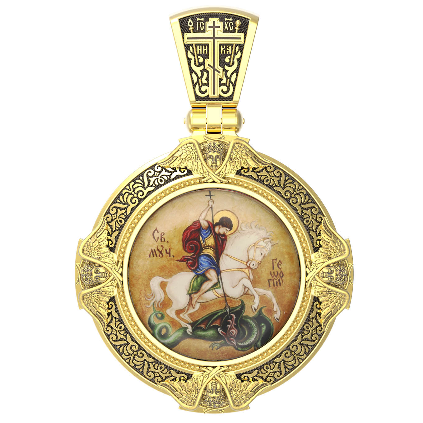 Образ Великомученика считают одним из наиболее чтимых Святынь, в Святыни Православных он олицетворяет собой заступника для верующих, чья жизнь имеет какое-либо отношение к военным делам, также он может оберегать и землевладельцев. Одно из самых великих чудес которое сотворил Великомученик так это — спасения всего города от устрашающего змия. Молитвами и своей непреклонной верой, взываемой к Всевышнему, он смог одолеть чудовище. Святой убил змея, спас жителей и их души от влияния дьявола, породив в них надежду и веру в Господа, призывая людей принять христианскую веру. Поскольку при жизни Святой Георгий был военным, он считается покровителем всех, кто имеет отношение к армии — военнослужащим, участникам боевых действий. Молитва перед иконой Георгия Победоносца поможет защититься от врагов, одержать победу в сражении (военном, спортивном, духовной брани с дьяволом), содействие в установлении мира между членами семьи, избавиться от телесного недуга.