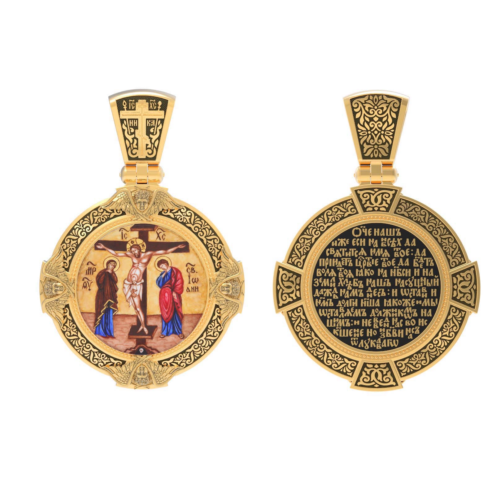 Образок из лимонного золота c эмаль, иконописью и темперой